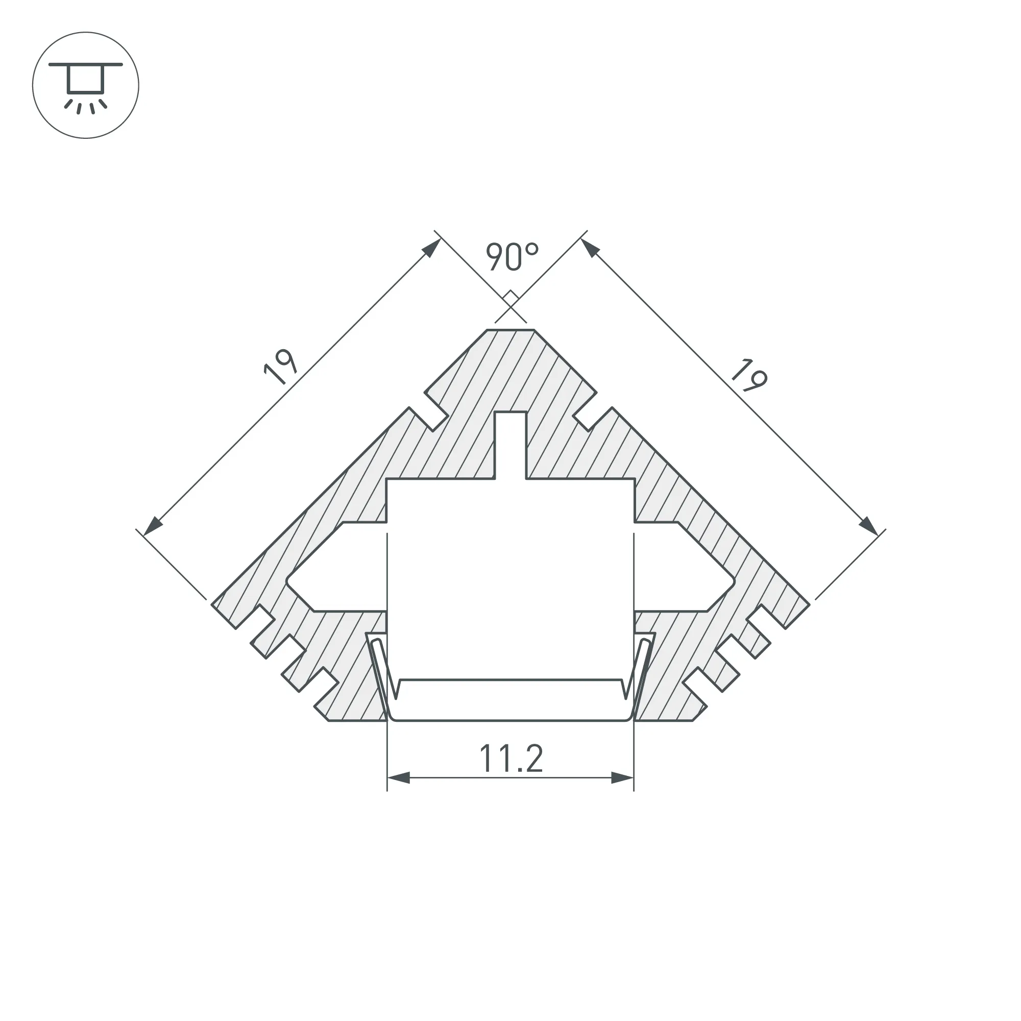 Алюминиевый анодированный угловой профиль для светодиодных лент и линеек. Габаритные размеры (L×W×H): 2000x19x19 мм. Ширина площадки для ленты 11,2 мм. Экраны, заглушки и другие аксессуары приобретаются отдельно. Цена за 1 метр.
