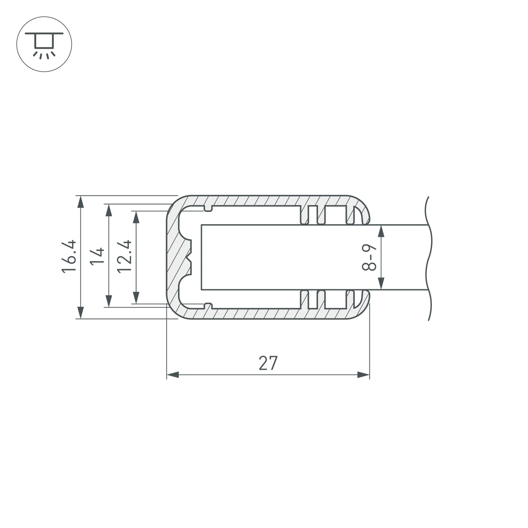 Алюминиевый анодированный профиль для освещения краев стекла толщиной 8-9 мм. Используется со стеклом 9 мм или экраном P12W. Габаритные размеры (L×W×H): 2000x16,4x27 мм. Подходят светодиодные жесткие линейки до 14мм. Экраны, заглушки и другие аксессуары приобретаются отдельно. Цена за 1 метр.