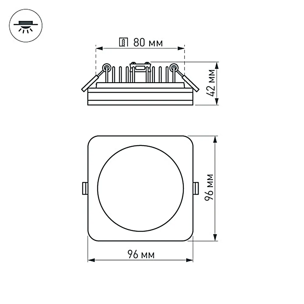 Квадратный светильник с контурным свечением. Корпус IP44 черный + вставка поликарбонат PC. Цвет ТЕПЛЫЙ БЕЛЫЙ 3000К, св.поток 700 лм, угол 120°+180°. Питание 180-240VAC (драйвер в к-те 300mA 20-40V), мощность 10Вт. Размеры 96х96х42 мм, установка в отв.80х80 мм, высота мин.40 мм.