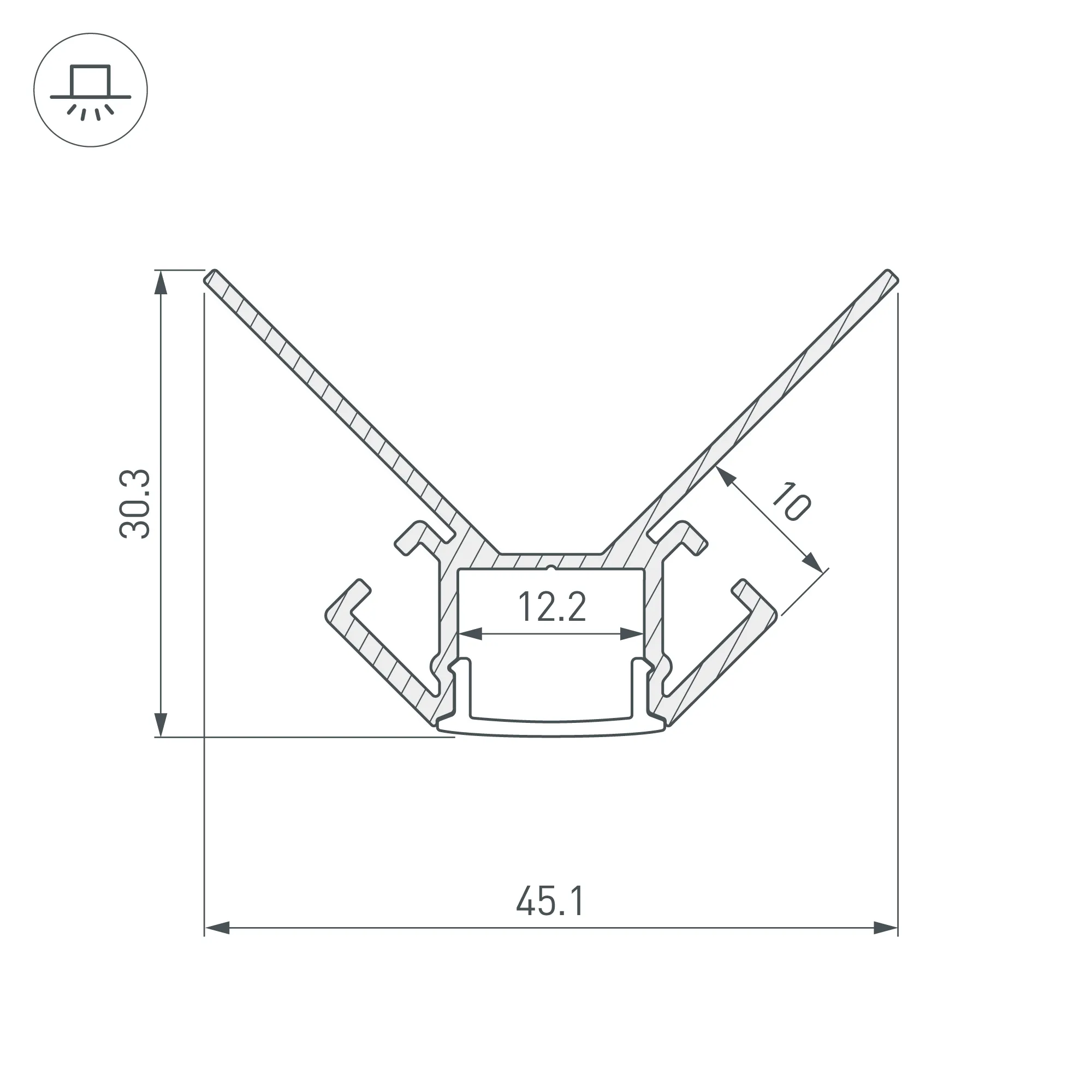 Алюминиевый анодированный угловой профиль для светодиодных лент и линеек, под строительную отделку или плитку. Фиксируется при помощи строительной смеси. Декоративная контурная подсветка внешних углов стен и конструкций. Габаритные размеры (L×W×H): 2000x45,1x30,3 мм. Ширина площадки для ленты 12 мм. Экраны, заглушки и другие аксессуары приобретаются отдельно. Цена за 1 метр.