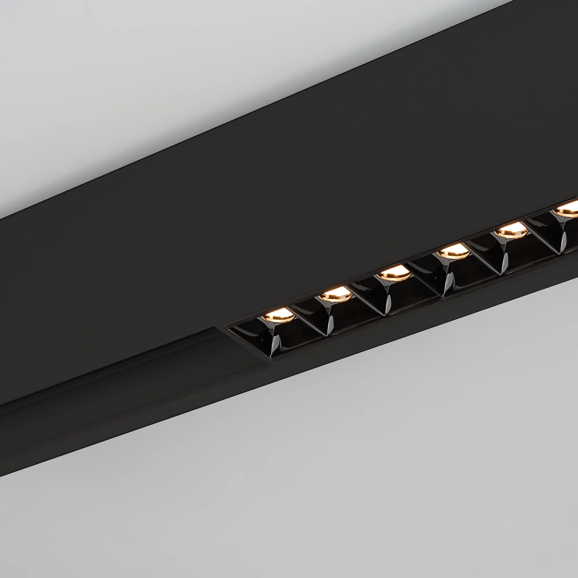Светильник для магнитных треков шириной 45мм, 18Вт. Цвет свечения ДНЕВНОЙ 4000K, световой поток 1400лм, угол 15°, CRI>90. Корпус прямоугольный, металл, цвет черный, IP20. Размеры LxWxH 481x35x43мм. Входное напряжение DC24V, мощность 18Вт. Драйвер DС24V/AC230V поставляется отдельно. Диммируется только с 026407(1), 027633.