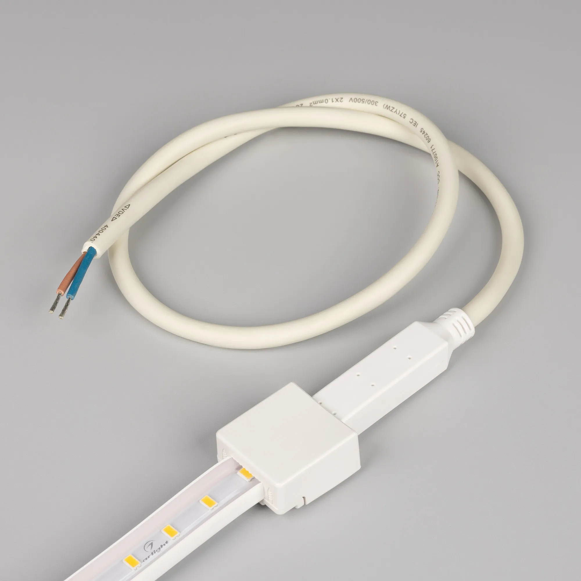 Герметичный коннектор для подключения питания светодиодных лент ARL-50000PV и ARL-10000PV , тип WP2, к сети 230V. Корпус IP65. Провод 600мм, 2х1мм². Максимальный допустимый ток 3А. Цена за 1шт.