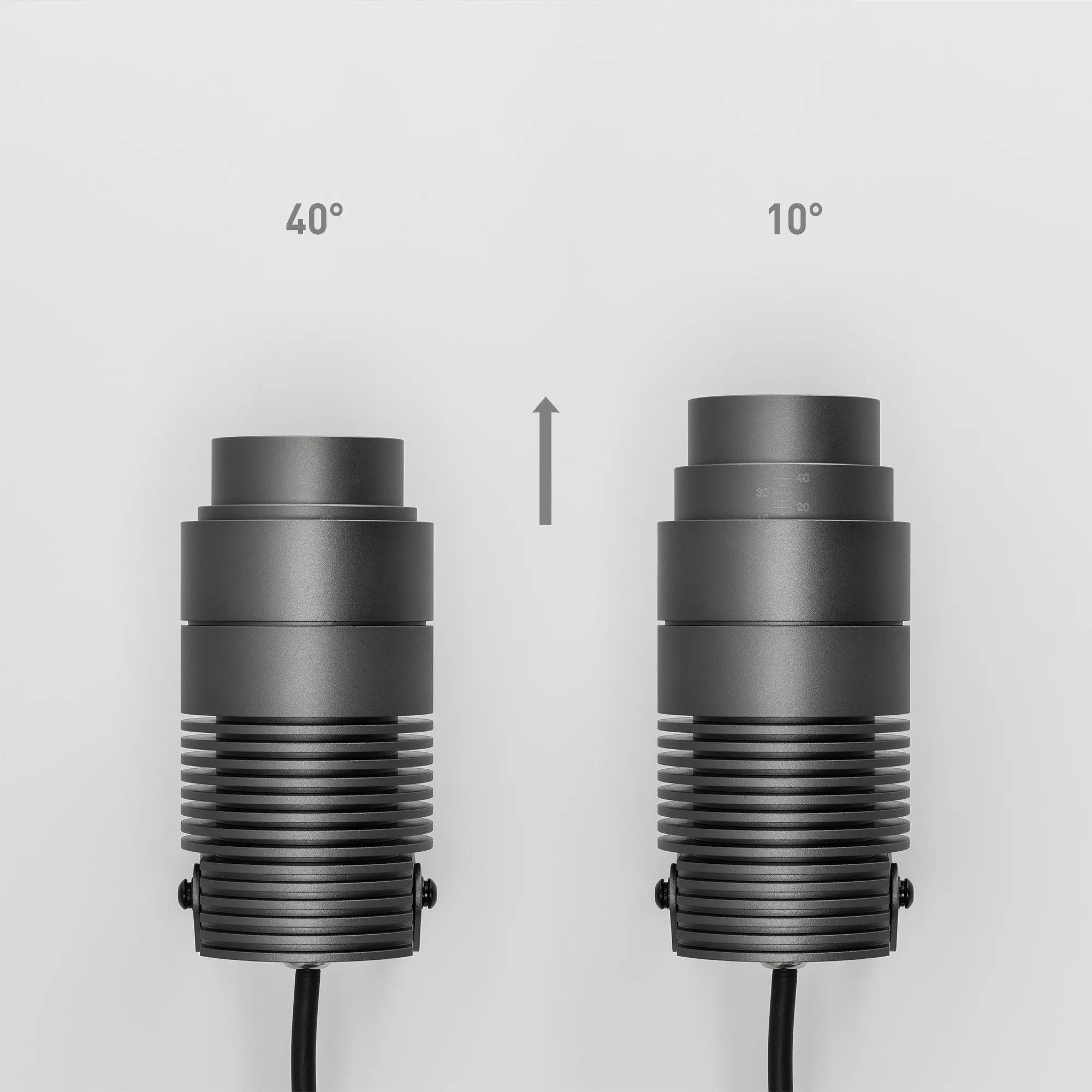 Уличный светодиодный прожектор, мощность 18Вт, регулируемый угол освещения 10-40°. Цвет ДНЕВНОЙ 4000К, световой поток для угла 10° 500 для угла 40° 800лм. Влагозащищенный корпус IP67 - темно-серый алюминий, экран из закаленного стекла. Угол поворота корпуса в вертикальной плоскости 135°. Питание 230В, мощность 18 Вт. Размеры DxH - Ø75x150мм. В комплекте 1м провод.