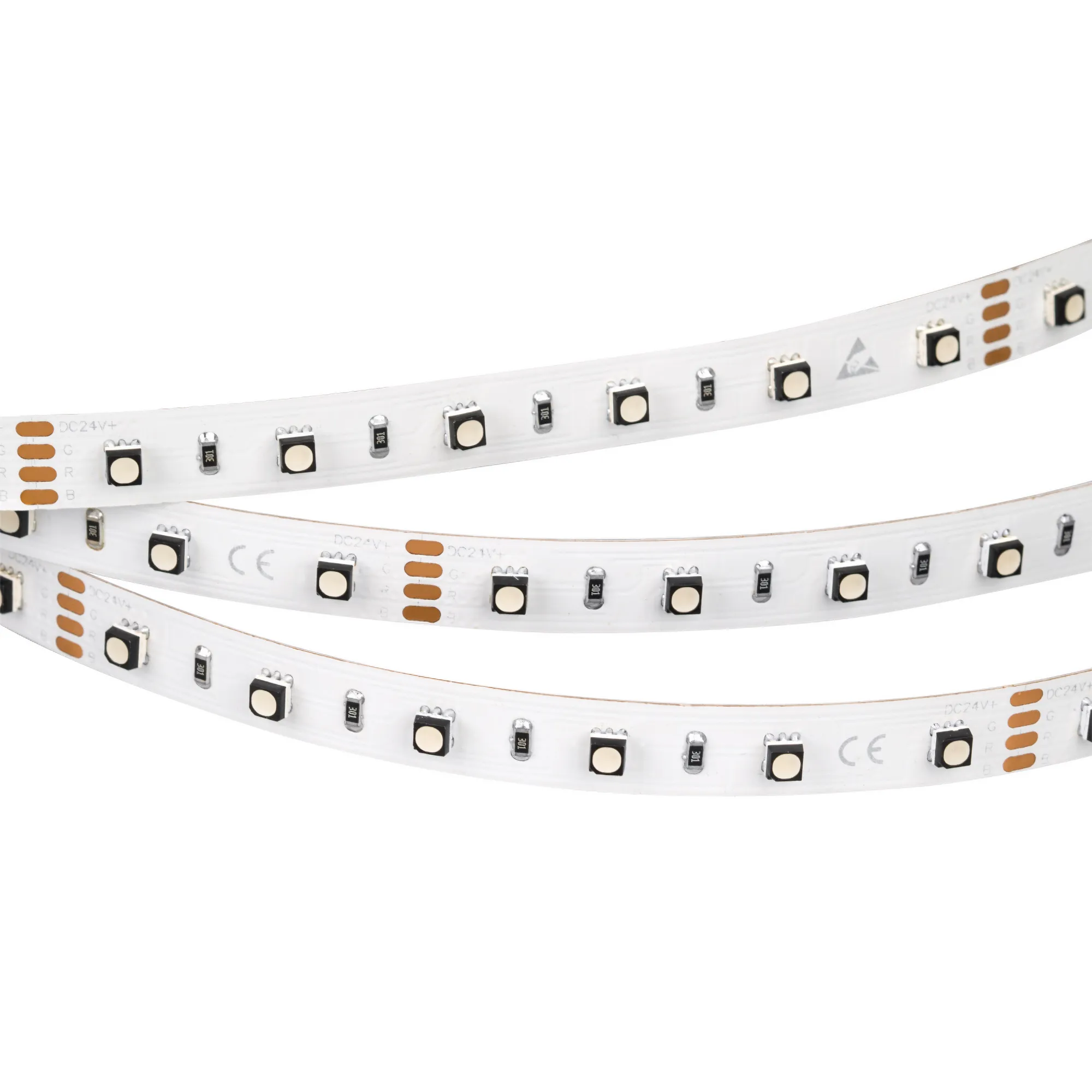 Мультицветная светодиодная лента MINI серии F60. Светодиоды SMD 3535, 60 шт/м, белая плата шириной 10 мм, скотч 3M. Цвет RGB, угол 120°. Питание 24 В, мощность 14.4 Вт/м (72 Вт на 5 м). Размеры 5000x10x3.1 мм. Мин. отрезок 100 мм, 6 светодиодов. Цена за 1 м.