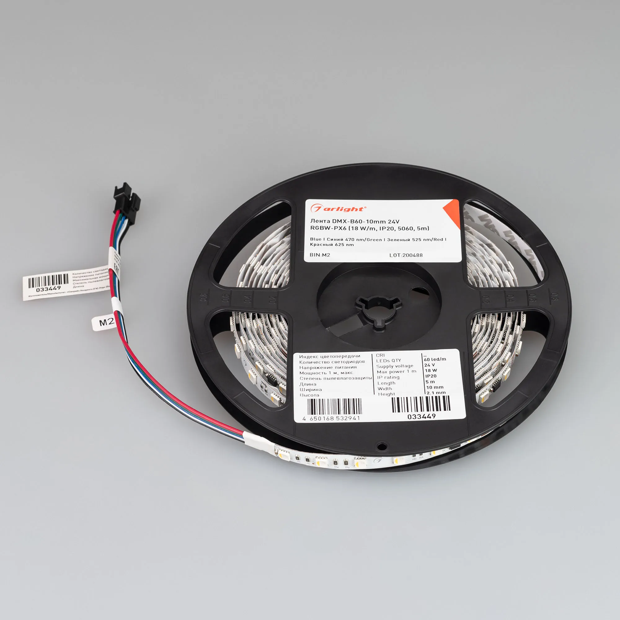 В магазине Arled Market Вы можете купить "Лента светодиодная DMX-B60-10mm 24V RGBW-PX6 (18 W/m, IP20, 5060, 5m) (Arlight, -)"