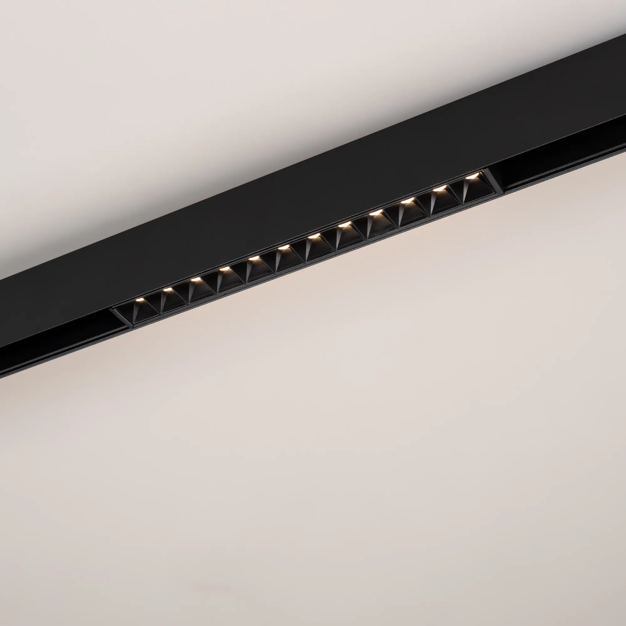 Светильник для магнитных треков MAG-ORIENT шириной 26 мм. Мощность 8 Вт, св. поток 460 лм, 58 лм/Вт, дневной 4000 K, CRI>90, угол 24°, напряжение питания 48 В. Черный прямоугольный корпус из металл, экран поликарбонат, степень защиты IP20. Размер: длина 235 мм, ширина 22 мм, высота 42 мм. Монтаж на трек MAG-ORIENT. Пульсация <1%.