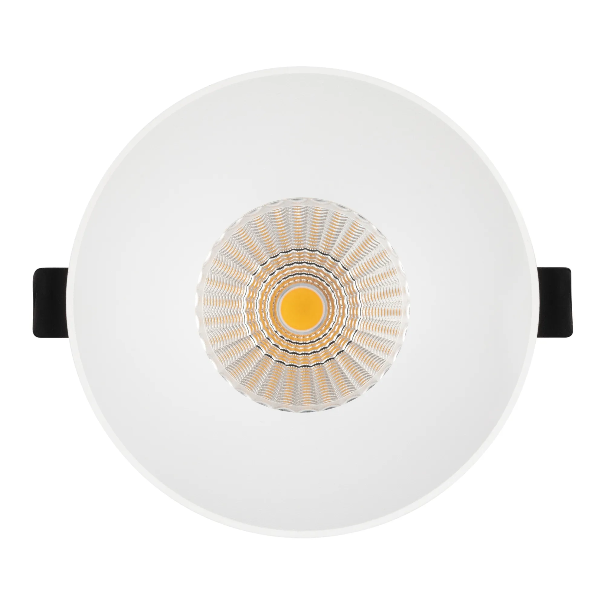 Встраиваемый светильник даунлайт. Мощность 15 Вт, св. поток 1300 лм, 87 лм/Вт, дневной 4000 K, CRI>90, UGR<16, угол 38°, напряжение питания 230 В. Белый круглый корпус из алюминия, степень защиты IP20. Размер: диаметр 95 мм, высота 90 мм. Монтаж встраиваемый, установочное отверстие: диаметр 86 мм. Драйвер 26-43 В, 350 мА, пульсация <2%.