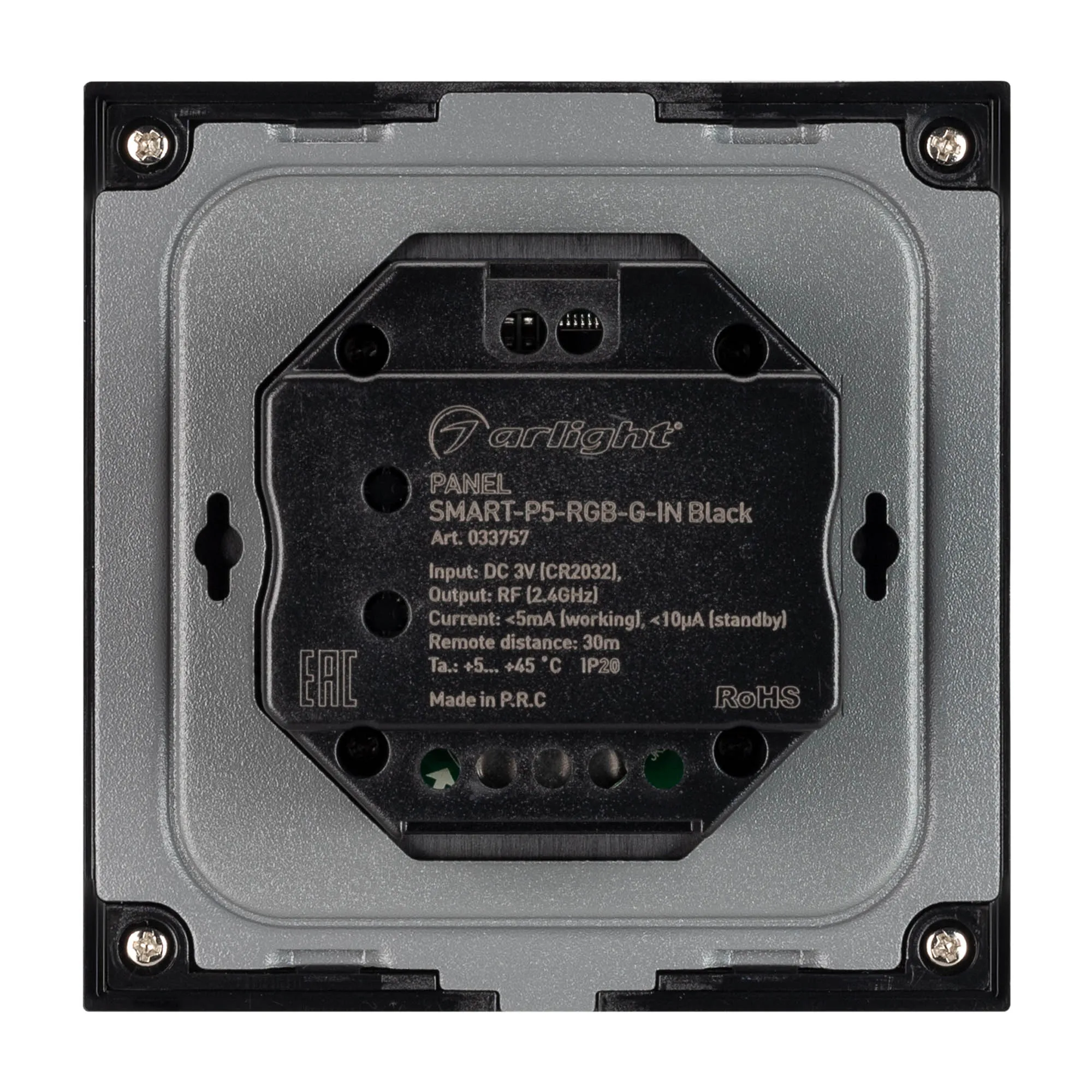 Панель SMART-P5-RGB-G-IN Black (3V, Rotary, 2.4G) (Arlight, IP20 Пластик, 5 лет)