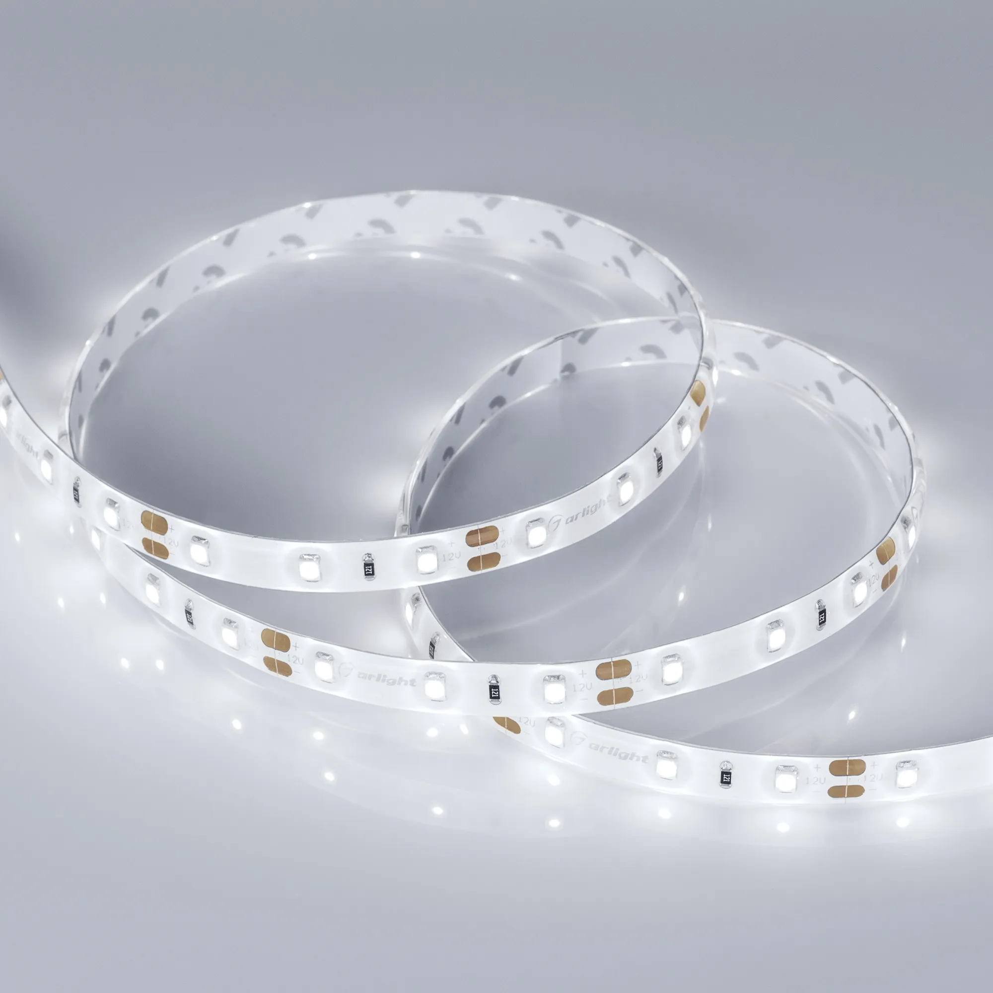 Светодиодная герметичная лента RTW серии A60, IP65 (SE - силиконовый верхний слой). Светодиоды SMD 2835, 60 шт/м, белая плата шириной 8 мм, скотч 3M. Цвет БЕЛЫЙ 6000K, индекс цветопередачи CRI>85, угол 120°. Питание 12 В, мощность 7.2 Вт/м (36 Вт на 5 м). Размеры 5000x8x2.2 мм. Мин. отрезок 50 мм, 3 светодиода. Цена за 1 м.