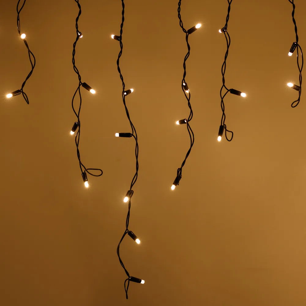 Светодиодная бахрома Pro. Размер 5600 мм (длина 5600 мм, по длине 48 нитей высотой 200/900 мм). Количество светодиодов 240 шт размером 7 мм. Основной цвет свечения ТЕПЛЫЙ БЕЛЫЙ (3000 К), эффект мерцания редких точек БЕЛЫЙ (6000К) с мягким световым рисунком (выпуклая молочно-белая линза), соотношение светодиодов: 198 теплых постоянного свечения / 42 белых с мерцанием. Эффект частого мерцания. Провод черный, каучук. Питание 230 В, Мощность 6 Вт, защита IP65, применение на улице под навесом. Аксессуары для подключения приобретаются отдельно.