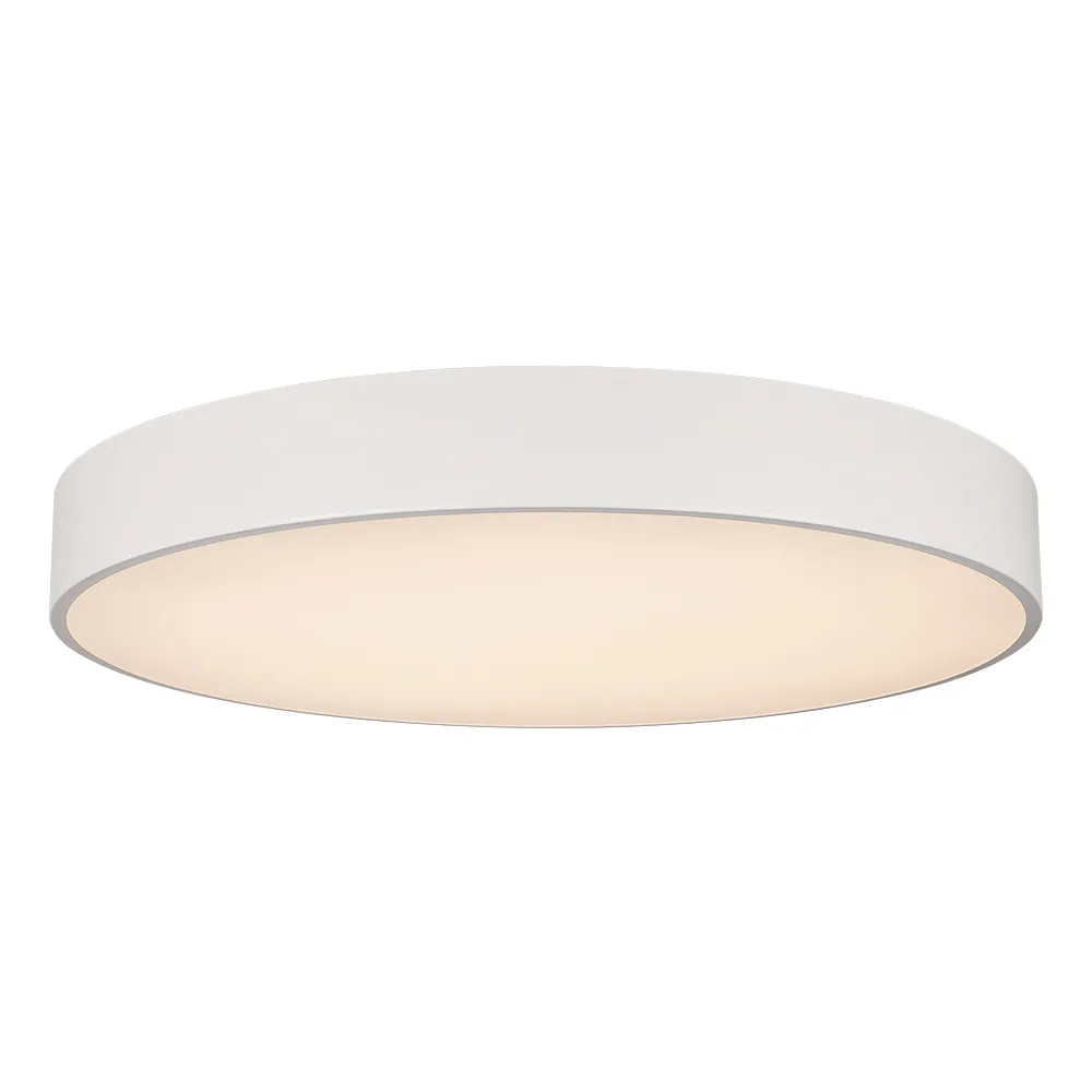 Накладной интерьерный светильник. Мощность 94 Вт, св. поток 8460 лм, 90 лм/Вт, дневной 4000 K, CRI>80, угол 120°, напряжение питания 230 В. Белый круглый корпус из алюминия, степень защиты IP20. Размер: диаметр 800 мм, высота 100 мм. Монтаж накладной. Драйвер 28-42 В, 1200 мА (2 шт.), пульсация <5%.