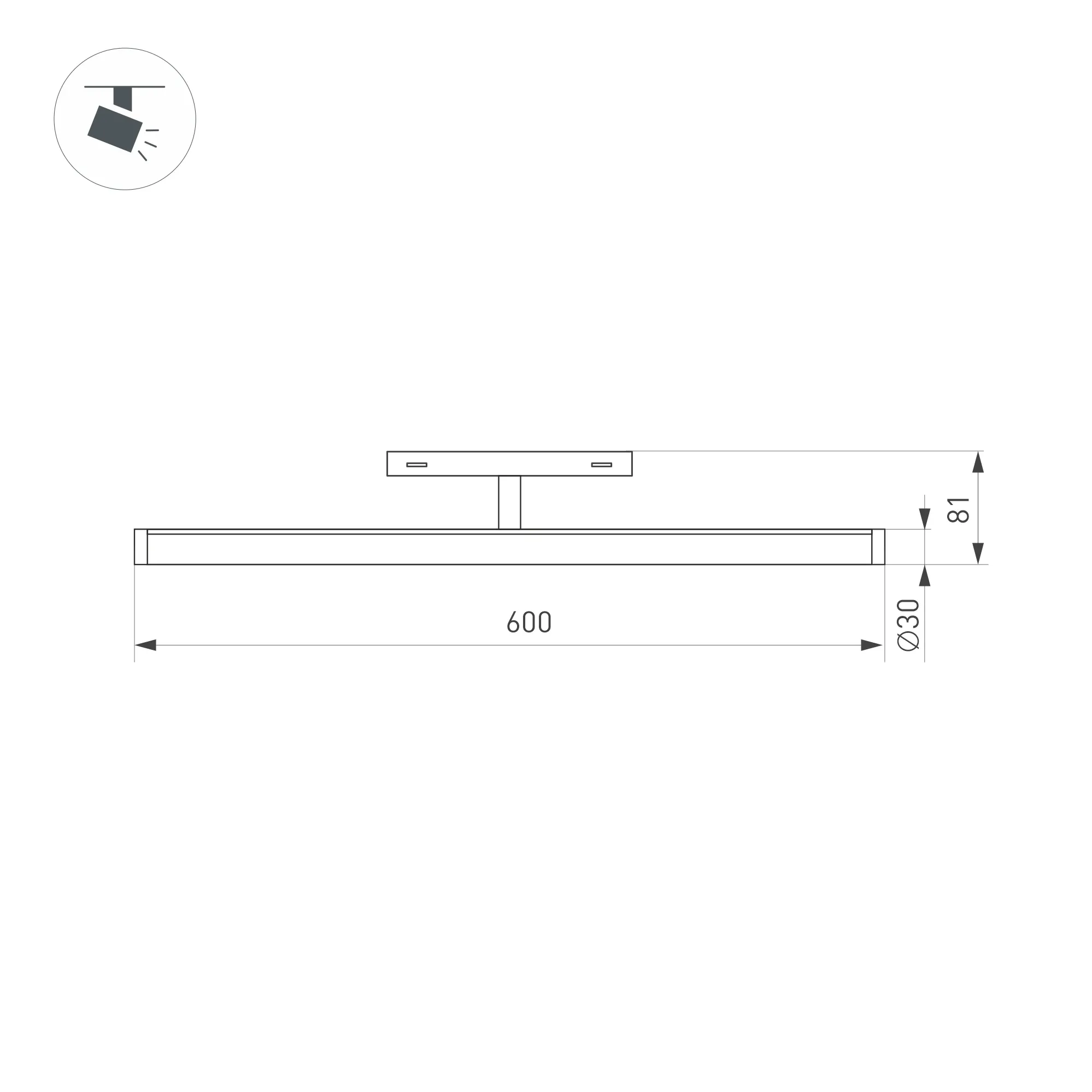 Светильник для магнитных треков MAG-ORIENT шириной 26 мм. Мощность 20 Вт, св. поток 2000 лм, 100 лм/Вт, дневной 4000 K, CRI>90, угол 180°, напряжение питания 48 В. Черный фигурный корпус из алюминия, экран поликарбонат, степень защиты IP20. Размер: диаметр 30 мм, длина 600 мм, высота 81 мм. Монтаж на трек MAG-ORIENT. Пульсация <1%.