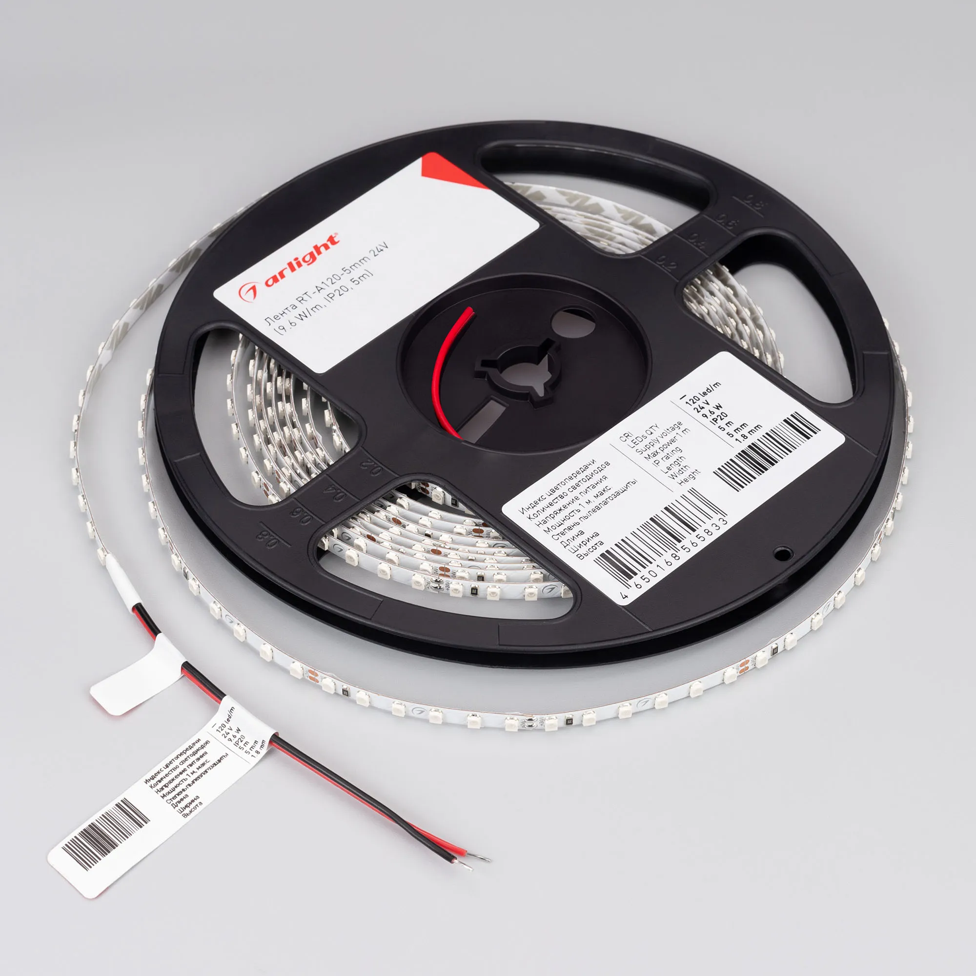 Лента светодиодная RT-A120-5mm 24V Red (9.6 W/m, IP20, 2835, 5m) (Arlight, 9.6 Вт/м, IP20)