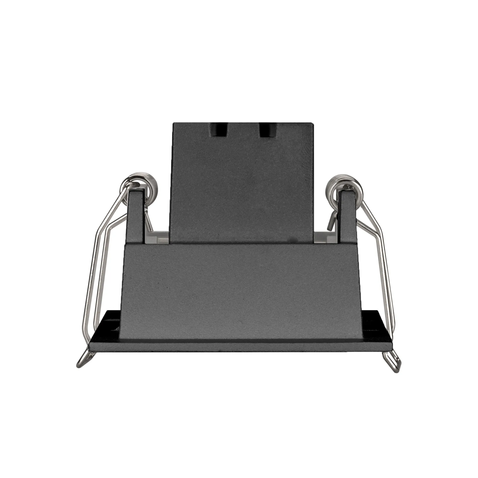 Встраиваемый поворотный светильник. Мощность 3 Вт, св. поток 166 лм, 51 лм/Вт, теплый 3000 K, CRI>98, угол 30°, напряжение питания 230 В. Чёрный прямоугольный корпус из алюминия, экран PMMA, степень защиты IP20. Размер: длина 67 мм, ширина 67 мм, высота 50 мм. Монтаж встраиваемый, установочное отверстие длина 60 мм, ширина 60 мм. Драйвер 2-4 В, 700 мА, пульсация <1%.