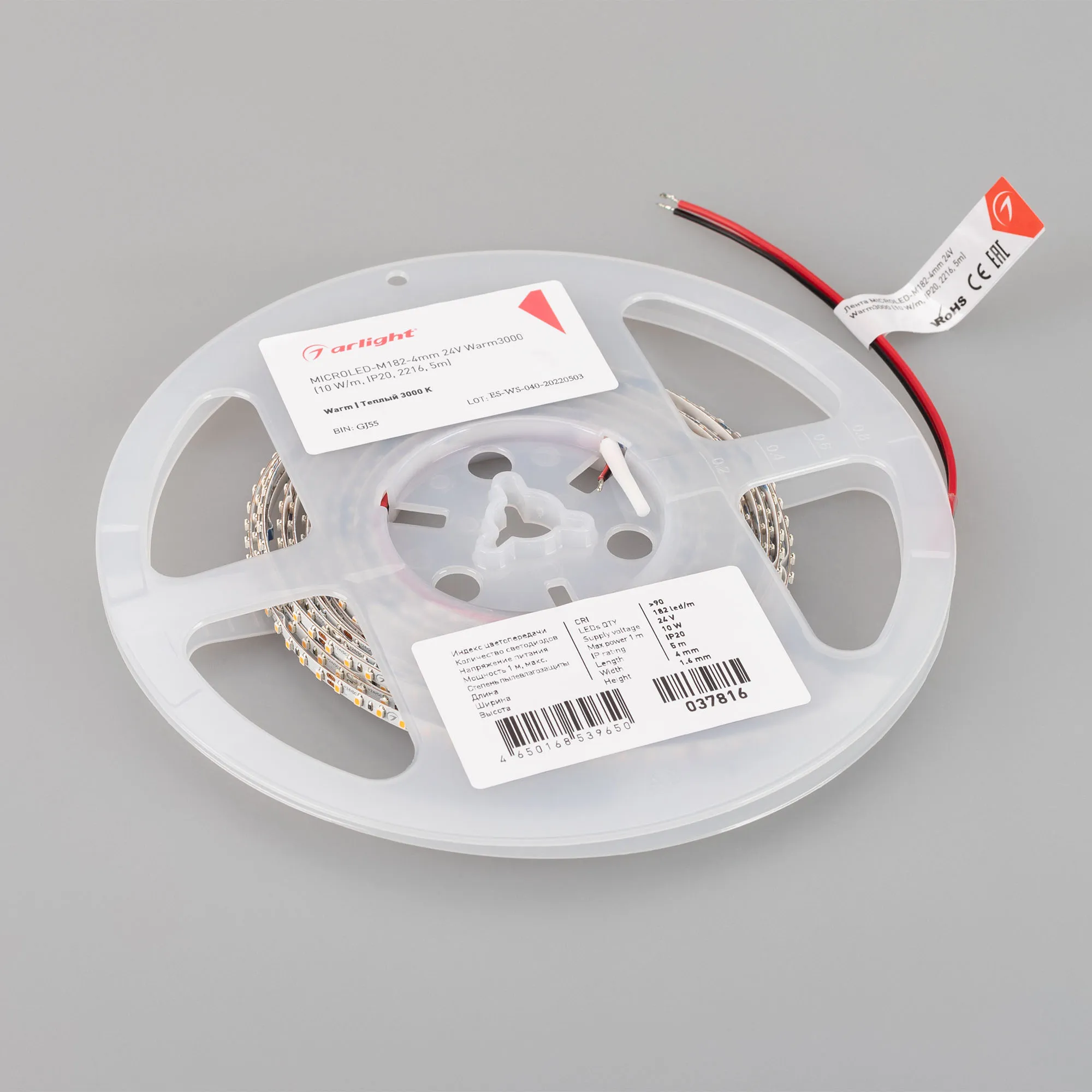 В магазине Arled Market Вы можете купить "Лента светодиодная MICROLED-M182-4mm 24V Warm3000 (10 W/m, IP20, 2216, 5m) (Arlight, узкая)"