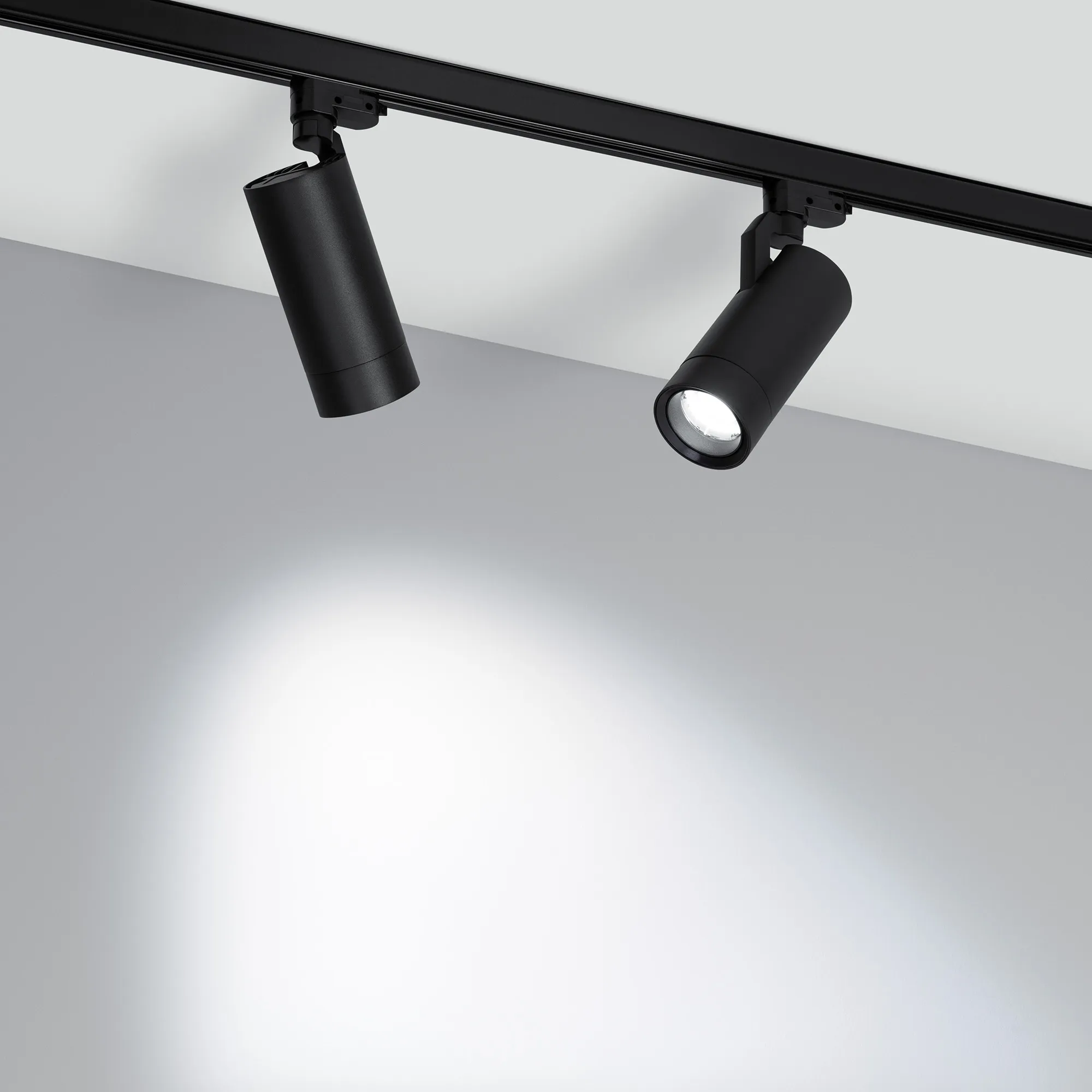 Светильник для треков/шин 4 провода, 20Вт. Цвет свечения меняется в диапазоне 3000К-6000К (возможность изменения цветовой температуры при помощи диммера DALI), световой поток 1500 лм, 74 лм/Вт, регулируемый угол 20-60°, CRI>90. Корпус круглый, металл, цвет черный, IP20. Размеры DxL Ø80x1816мм.. Входное напряжение AC220-240V, мощность 20Вт. Драйвер встроенный 12-54 В, 500 мА. Совместим только с шинопроводом серии С.