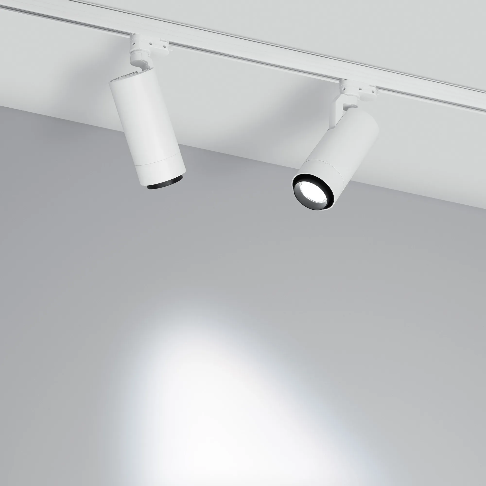 Светильник для треков/шин 4 провода, 20Вт. Цвет свечения меняется в диапазоне 3000К-6000К (возможность изменения цветовой температуры при помощи диммера DALI), световой поток 1500 лм, 74 лм/Вт, регулируемый угол 20-60°, CRI>90. Корпус круглый, металл, цвет белый, IP20. Размеры DxL Ø80x181мм.. Входное напряжение AC220-240V, мощность 20Вт. Драйвер встроенный 12-54 В, 500 мА. Совместим только с шинопроводом серии С.