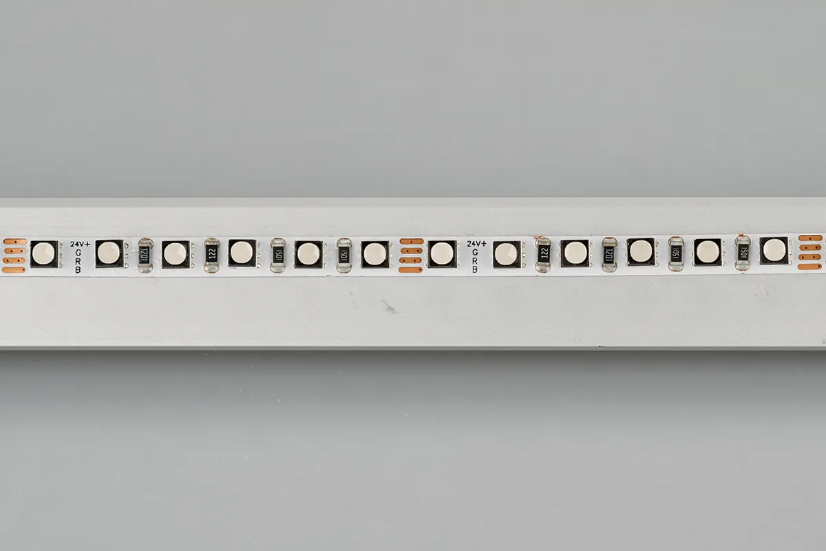 Гибкая лента LUX, светодиоды smd 3535, 120шт/м (600шт на 5м), узкая плата 5мм, скотч 3М. Цвет RGB. Питание 24V, мощность 8 Вт/м (40 Вт на 5м), угол 120°. Размеры 5000х5x3.3мм. Мин.отрезок 50мм, 6 шт светодиодов. Пакет 5м. Цена за 1м. Рекомендуется установка на профиль.