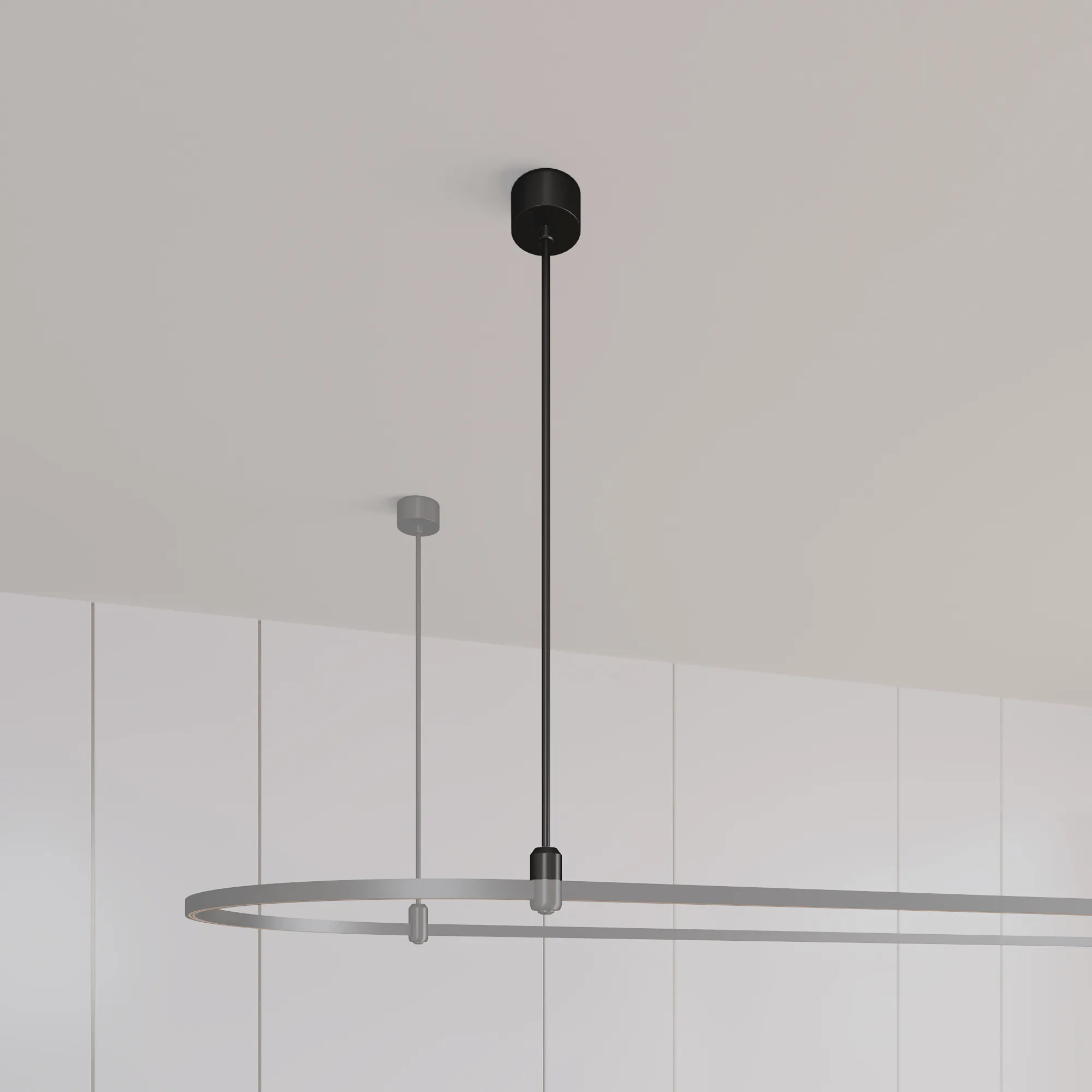 Подвес жесткий длиной 800 мм тип А с подводом питания для крепления к поверхности треков системы APRIORI. Напряжение питания DC48V. Диаметр чаши 80 мм, внутренний диаметр чаши 74мм, внешняя высота чаши 38 мм, глубина чаши до монтажного отверстия 25 мм, общая высота подвеса 765 мм. Материал алюминий, цвет черный.