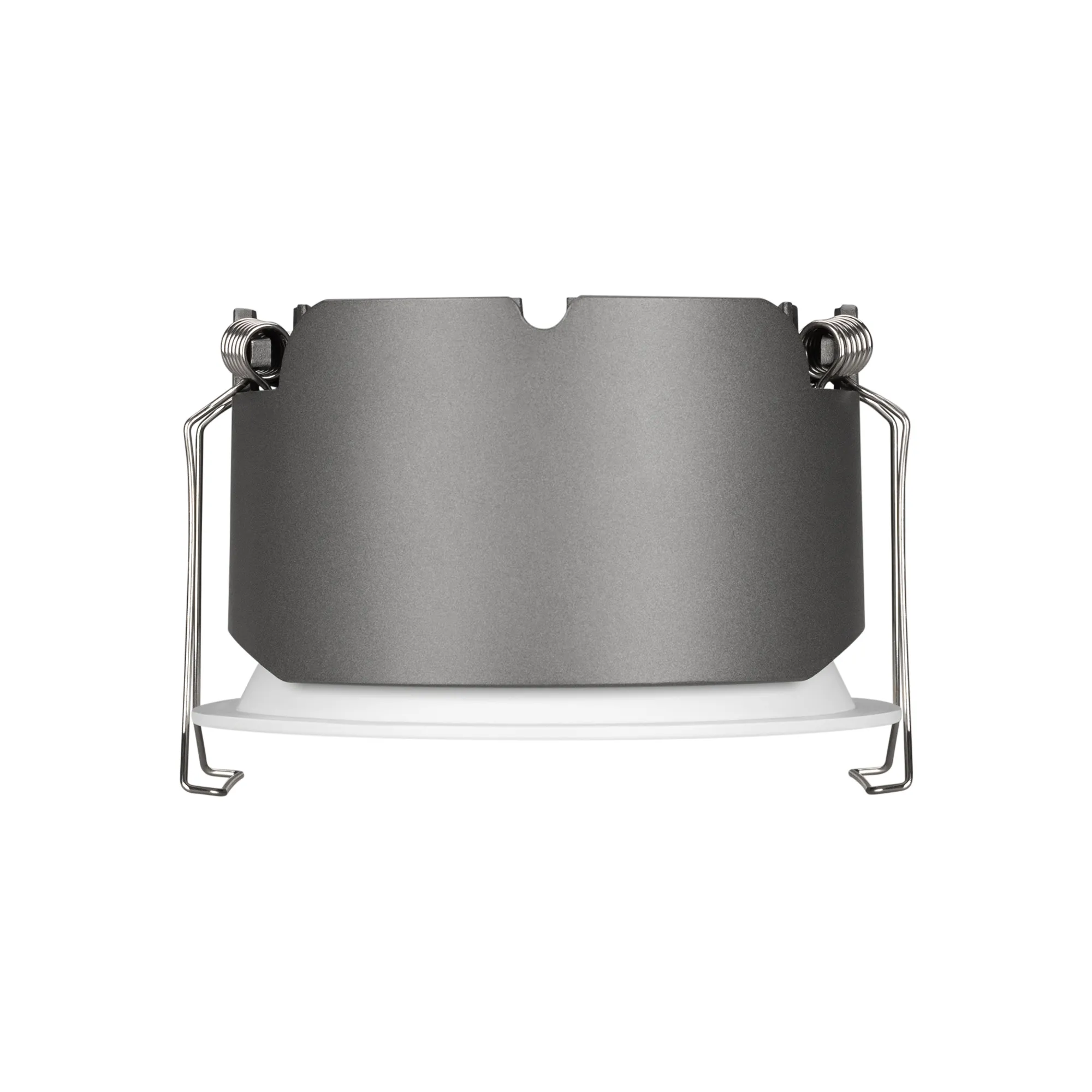 Встраиваемый светильник даунлайт. Мощность 15 Вт, св. поток 1260 лм, 84 лм/Вт, дневной 4000 K, CRI>90, угол 36°, напряжение питания 230 В. Белый круглый корпус из алюминия, степень защиты IP20. Размер: диаметр 106 мм, высота 63 мм. Монтаж встраиваемый, установочное отверстие: диаметр 95 мм. UGR<14. Драйвер 27-40 В, 350 мА, пульсация <2%.