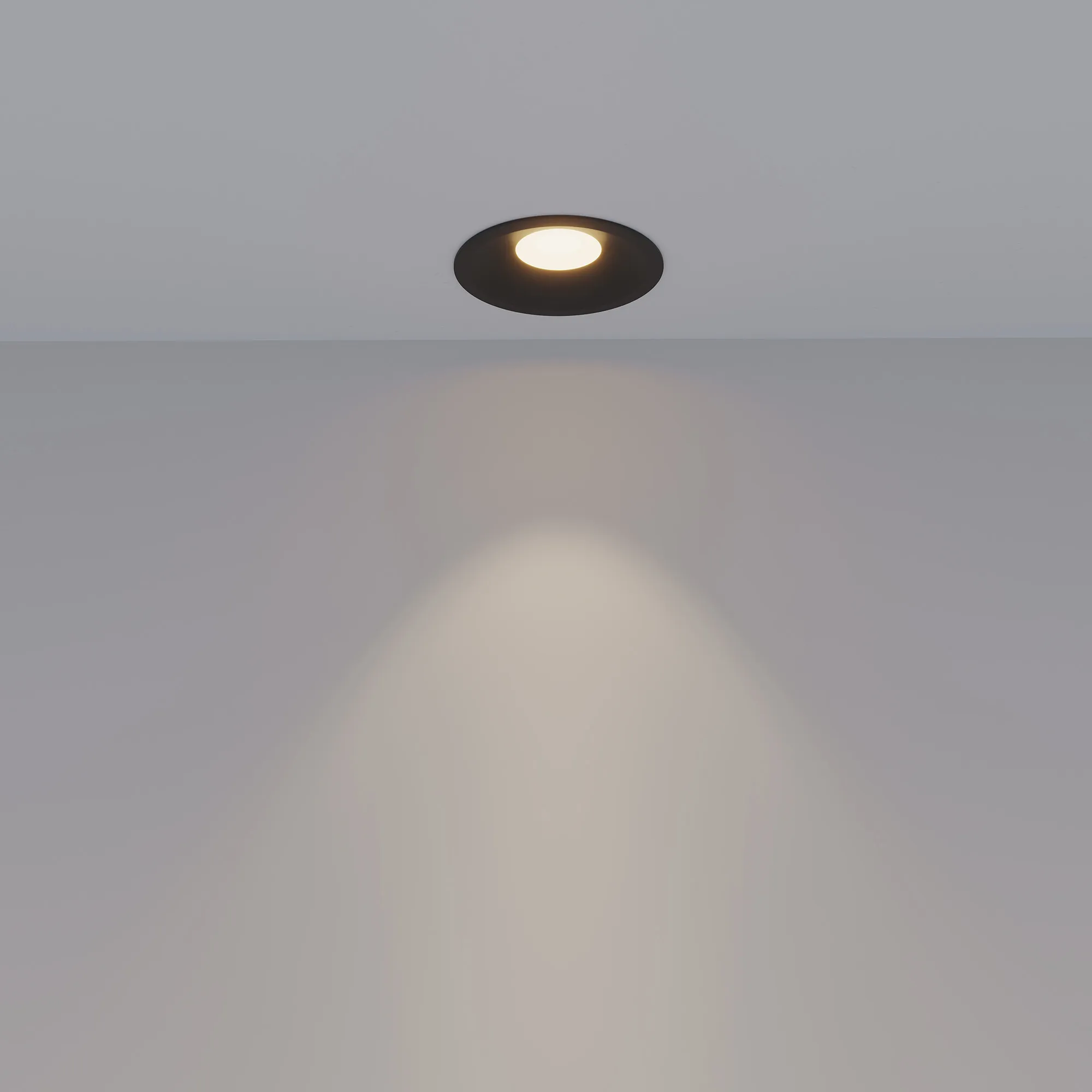 Встраиваемый светильник даунлайт. Мощность 20 Вт, св. поток 1810 лм, 90 лм/Вт, тёплый 3000 K, CRI>90, угол 50°, напряжение питания 230 В. Чёрный круглый корпус из алюминия, степень защиты IP20. Размер: диаметр 123 мм, высота 68 мм. Монтаж встраиваемый, установочное отверстие: диаметр 110 мм. UGR<14. Драйвер 27-42 В, 500 мА, пульсация <2%.