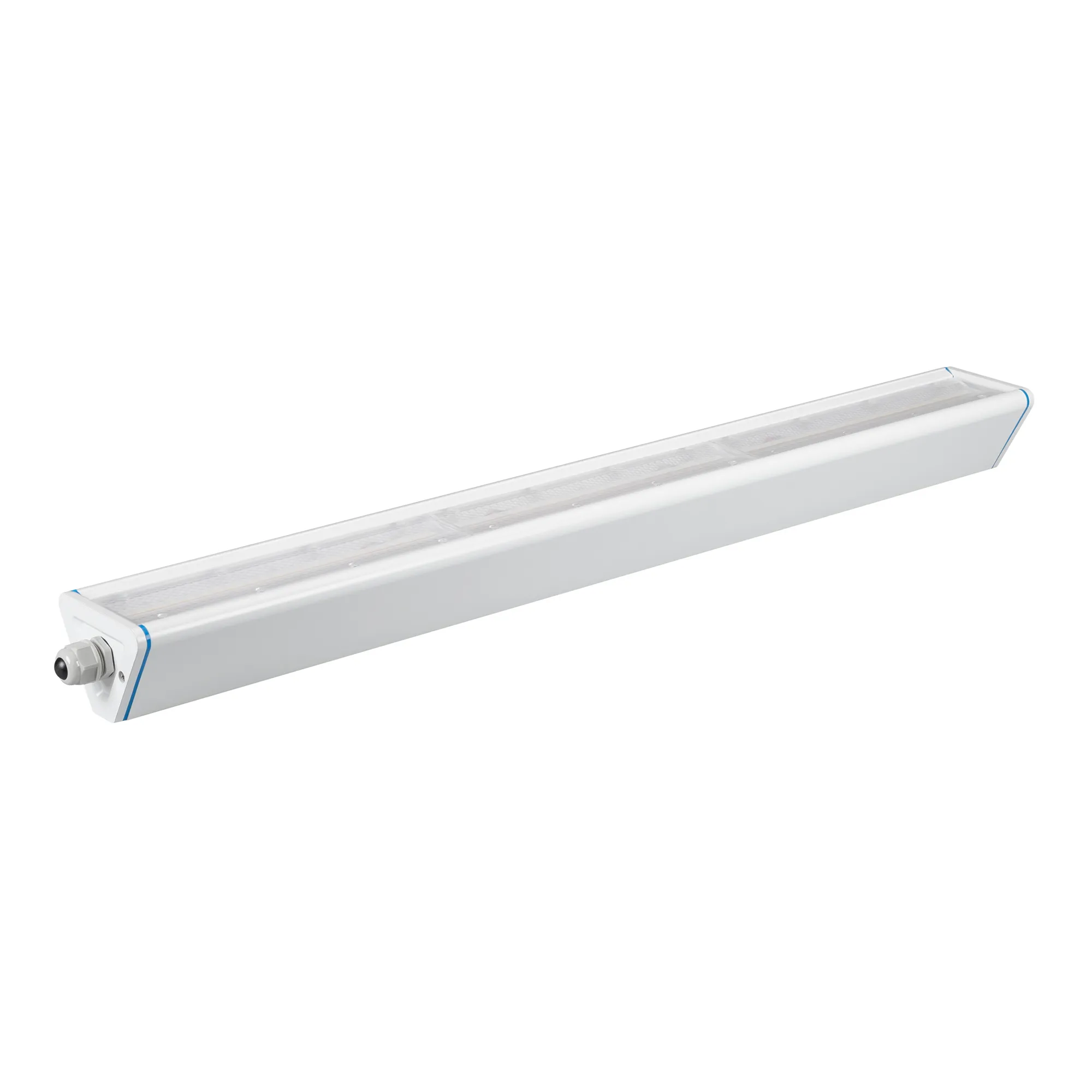 Линейный светильник для освещения складских и промышленных помещений. Мощность 150W, напряжение питания AC 110-277V/50Hz.CRI80. Управление 1-10В. Тип светодиодов SMD2835, с групповой оптической линзой. Цвет свечения ДНЕВНОЙ 5000K, световой поток 22000 Lm, угол рассеивания 50*90°. Цвет корпуса белый, степень пылевлагозащиты IP65. Степень ударопрочности IK08. Габариты 885х105х83 mm. В светильнике присутствует функция защиты от удара молнии. Есть сквозная проводка. Комплект подвеса и крепление для накладного монтажа в КОМПЛЕКТЕ.