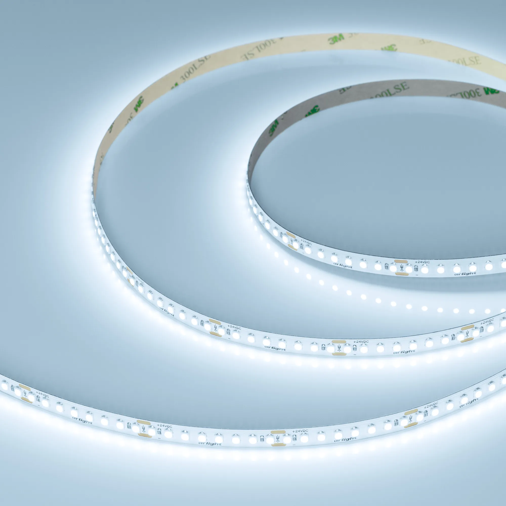 Поставка под заказ от 300 м. Светодиодная лента UL серии A176. Светодиоды SMD 2835, 176 шт/м, белая плата шириной 8 мм, скотч 3M. Цвет ХОЛОДНЫЙ 8000K, индекс цветопередачи CRI>90, угол 120°. Питание 24 В, мощность 15 Вт/м (75 Вт на 5 м). Размеры 5000x8x2 мм. Мин.отрезок 45.45 мм, 8 светодиодов. Цена за 1 м. Обязательная установка на профиль.