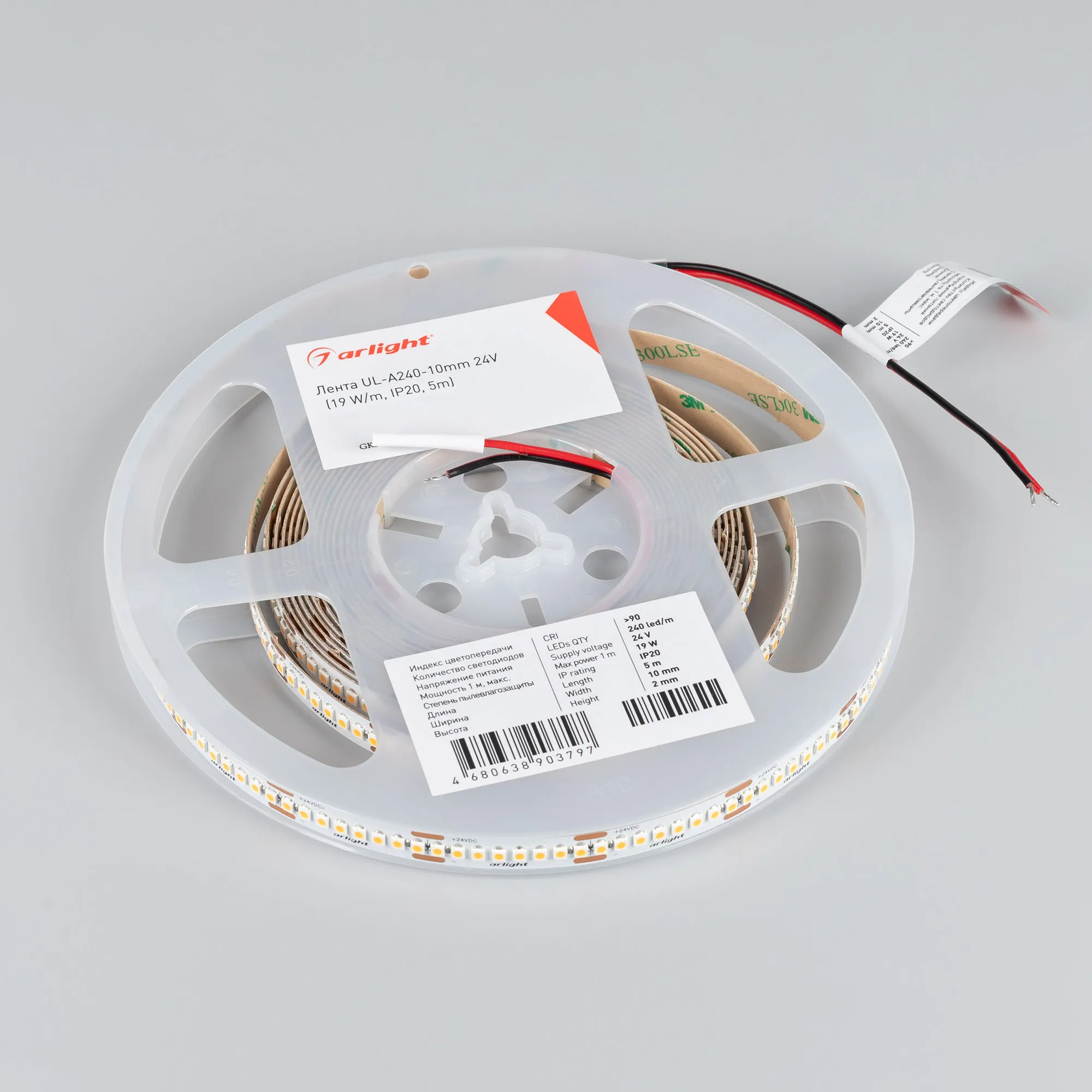 В магазине Arled Market Вы можете купить "Лента UL-A240-10mm 24V Warm2700 (19 W/m, IP20, 5m) (Arlight, 7 лет)"