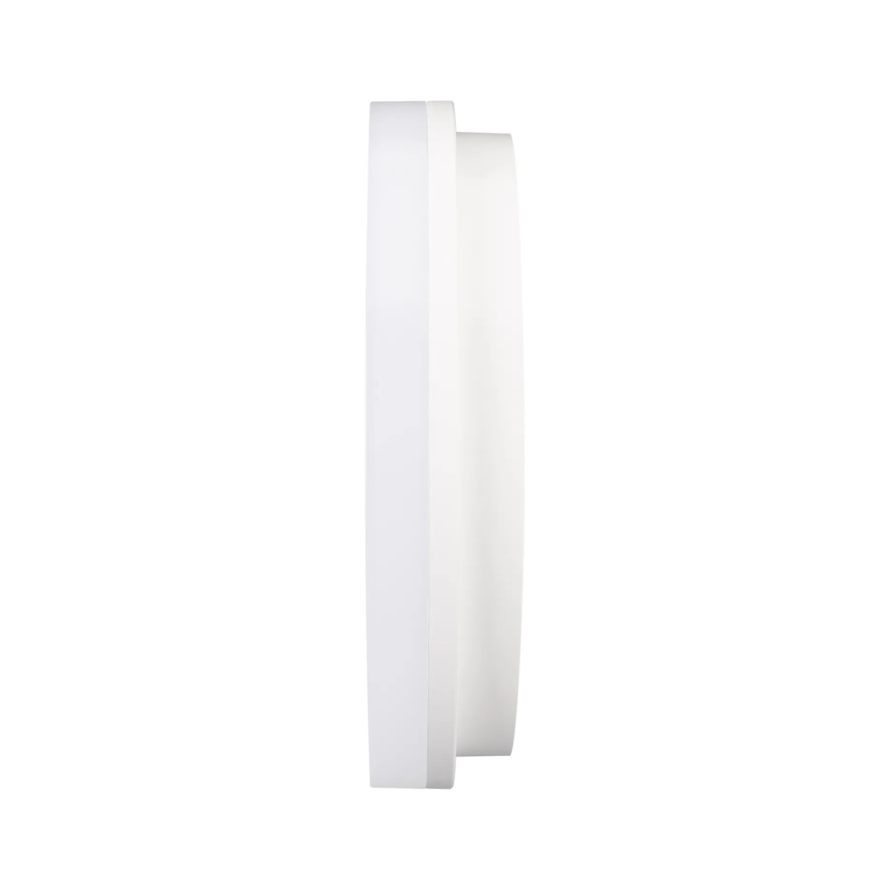 Накладной светильник с переключателем мощности 17/21Вт, белый круглый корпус (IK10). Встроенный микроволновый датчик движения. Дальность срабатывания 9,5м; время отключения и чувствительность датчика регулируется. Показатель защиты от пыли и влаги IP54. Цвет свечения БЕЛЫЙ ДНЕВНОЙ 4000К и ТЕПЛЫЙ 3000К (переключатель на корпусе), св.поток 2210-2830лм, CRI(Ra)>80, угол излучения 110°. Размер Ф300x65мм. Материал рассеивателя PC. Материал корпуса ABS пластик. Питание AC220-240V. В светильниках транзитная колодка (можно подключать светильник к светильнику, используя одну точку ввода).