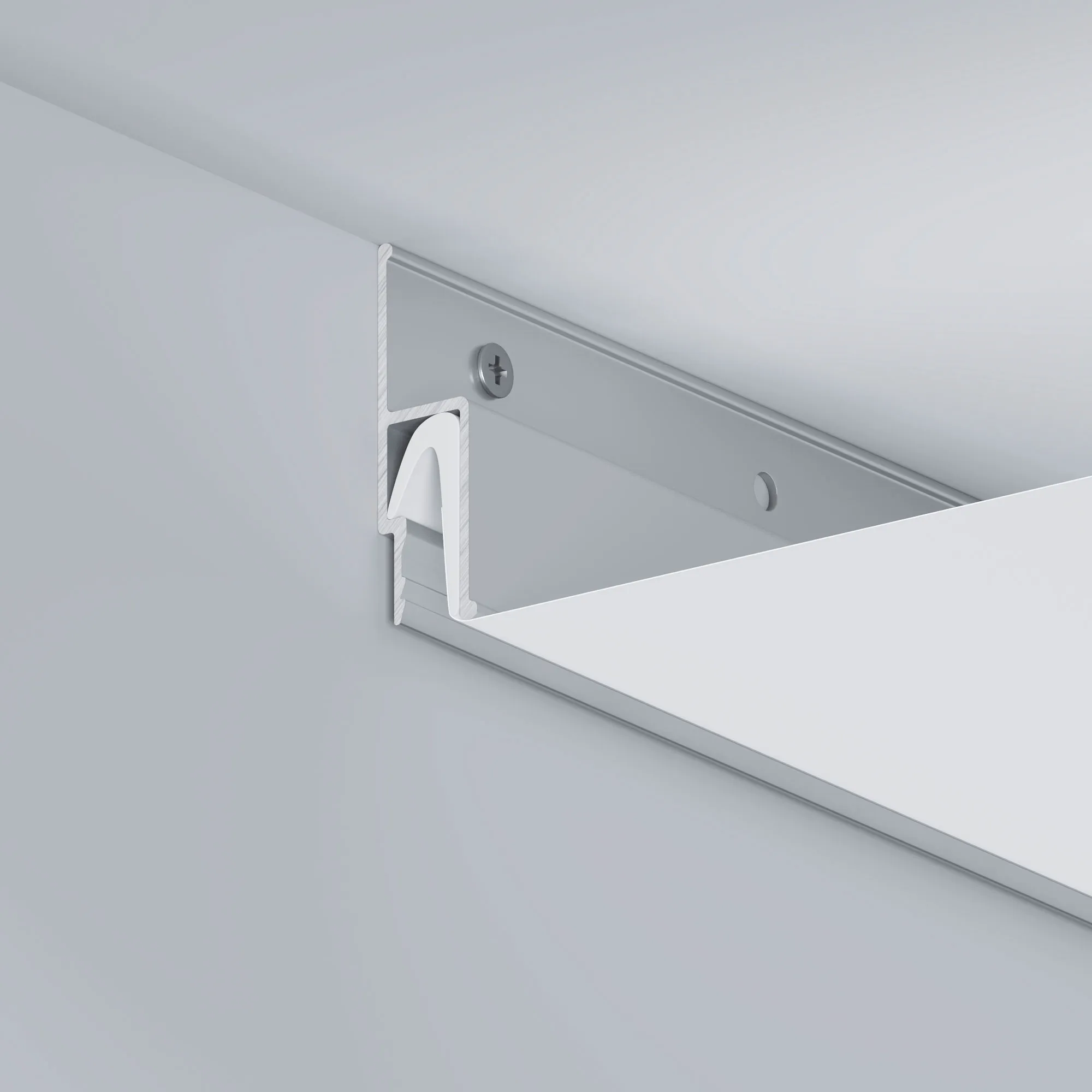 Алюминиевый профиль для установки натяжных потолков, стеновой с перфорацией. Гарпунная система монтажа. Габаритные размеры (L×W×H): 2000x10x34мм. Цена за 1 метр.