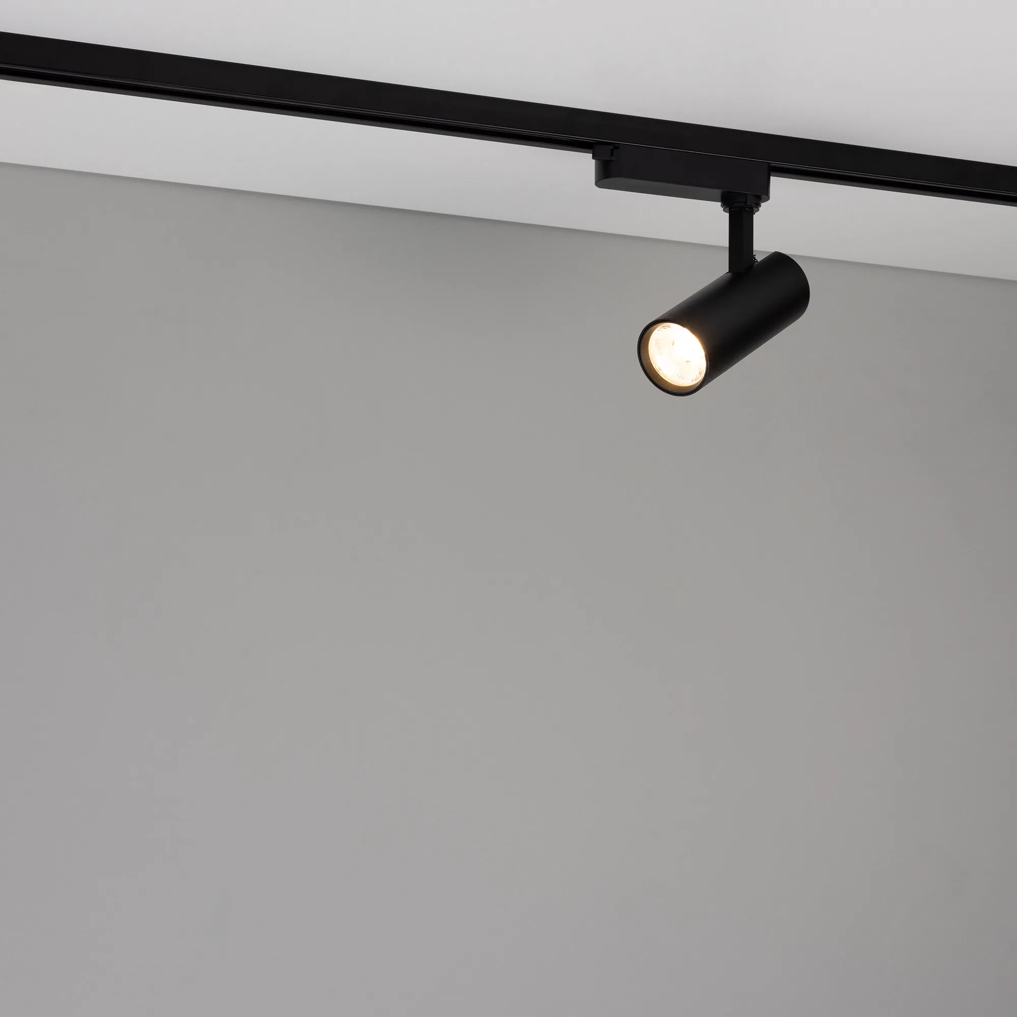 Светильник для треков/шин 2 провода. Мощность 15 Вт, св. поток без решетки honeycomb 1500 лм, 100 лм/Вт, с решеткой honeycomb 990 лм, 66 лм/Вт, тёплый 3000 K, CRI>90, угол 36°, напряжение питания 230 В. Черный круглый корпус из алюминия, материал линзы PMMA, степень защиты IP20. Размер: диаметр 60 мм, длина световой части 141 мм. Монтаж на трек 1-фазный. Драйвер встроенный 350 мА 25-40 В, пульсация <5%.