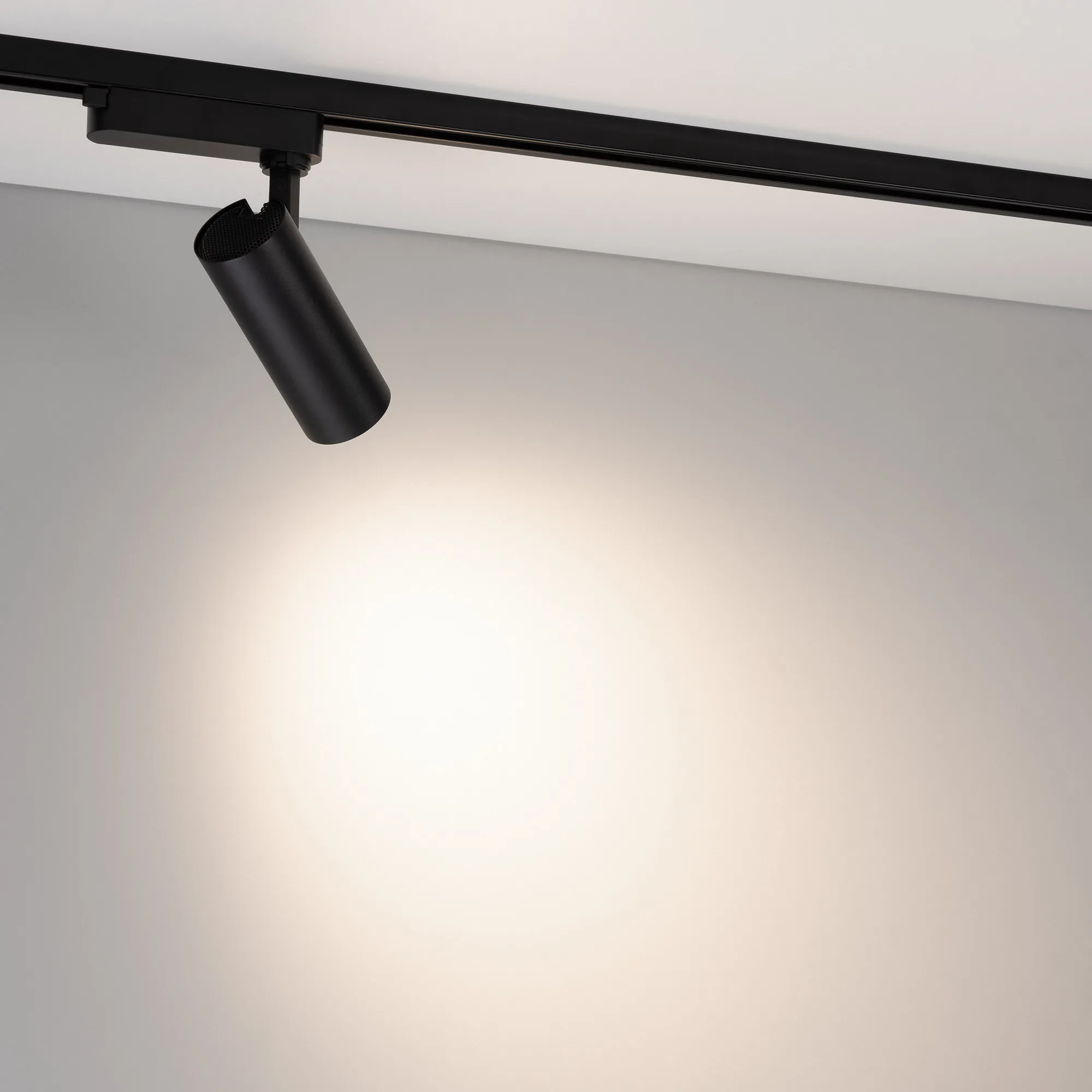 Светильник для треков/шин 2 провода. Мощность 10 Вт, св. поток без решетки honeycomb 1000 лм, 100 лм/Вт, с решеткой honeycomb 660 лм, 66 лм/Вт, дневной 4000 K, CRI>90, угол 55°, напряжение питания 230 В. Черный круглый корпус из алюминия, материал линзы PMMA, степень защиты IP20. Размер: диаметр 55 мм, длина световой части 141 мм. Монтаж на трек 1-фазный. Драйвер встроенный 25-40 В, 250мА., пульсация <5%.
