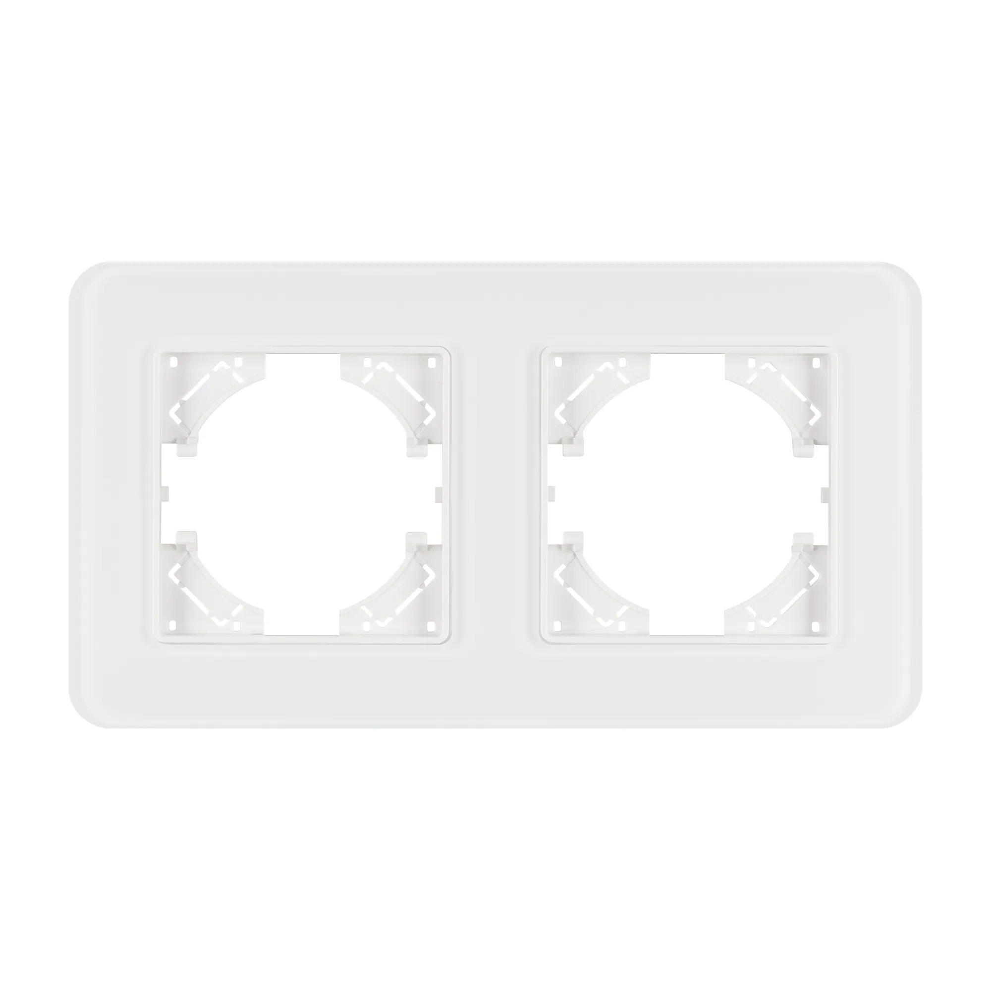 Рамка стеклянная на 2 поста, под встраиваемый механизм. Цвет - белый. Уровень герметичности IP20. Ориентация монтажа - горизонтальная (основным ориентиром служат посадочные выступы для накладки механизма).