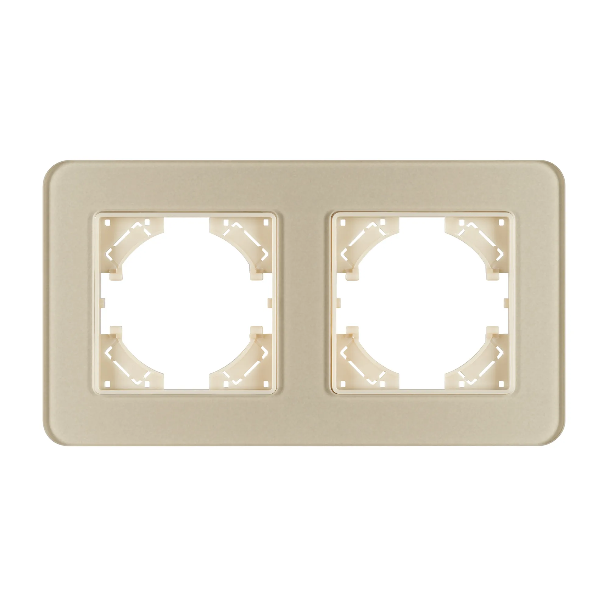 Рамка стеклянная на 2 поста, под встраиваемый механизм. Цвет - золотой с Soft-Touch покрытием. Уровень герметичности IP20. Ориентация монтажа - горизонтальная (основным ориентиром служат посадочные выступы для накладки механизма).