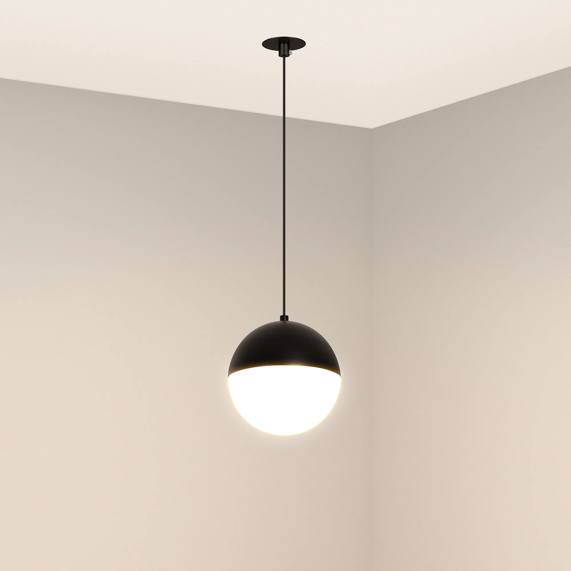 Светильник встраиваемый подвесной. Мощность 11 Вт, св. поток 960 лм, 80 лм/Вт, дневной 4000 K, CRI>90, угол 170°, напряжение питания 230 В. Черный корпус из алюминия, материал плафона стекло, степень защиты IP20. Размер: диаметр 150 мм, длина подвеса 1500 мм. Габариты чаши: Ø60x40 мм. Размер врезного отверстия Ø 50 мм. Монтаж встраиваемый. Драйвер 28-42 В, 250 мА, пульсация <1%.
