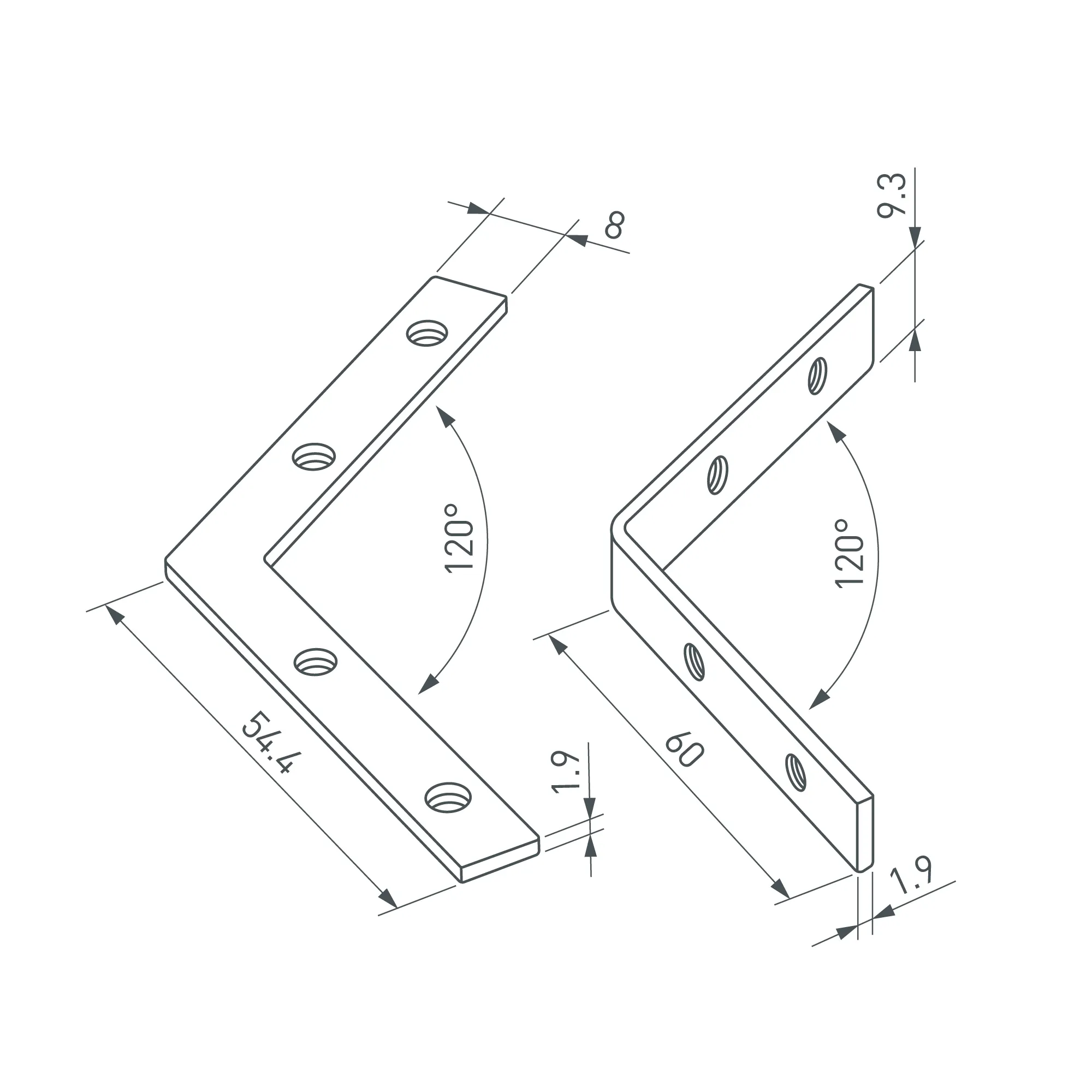 Угловой коннектор (угол к плоскости) для соединения 2-х отрезков профиля LINE-6070 под углом 120°. Устанавливается в паз. В комплекте: соединитель внутренний - 2 шт., соединитель внешний - 2 шт., винт - 16 шт., шестигранный ключ - 1 шт. Цена за 1 комплект.