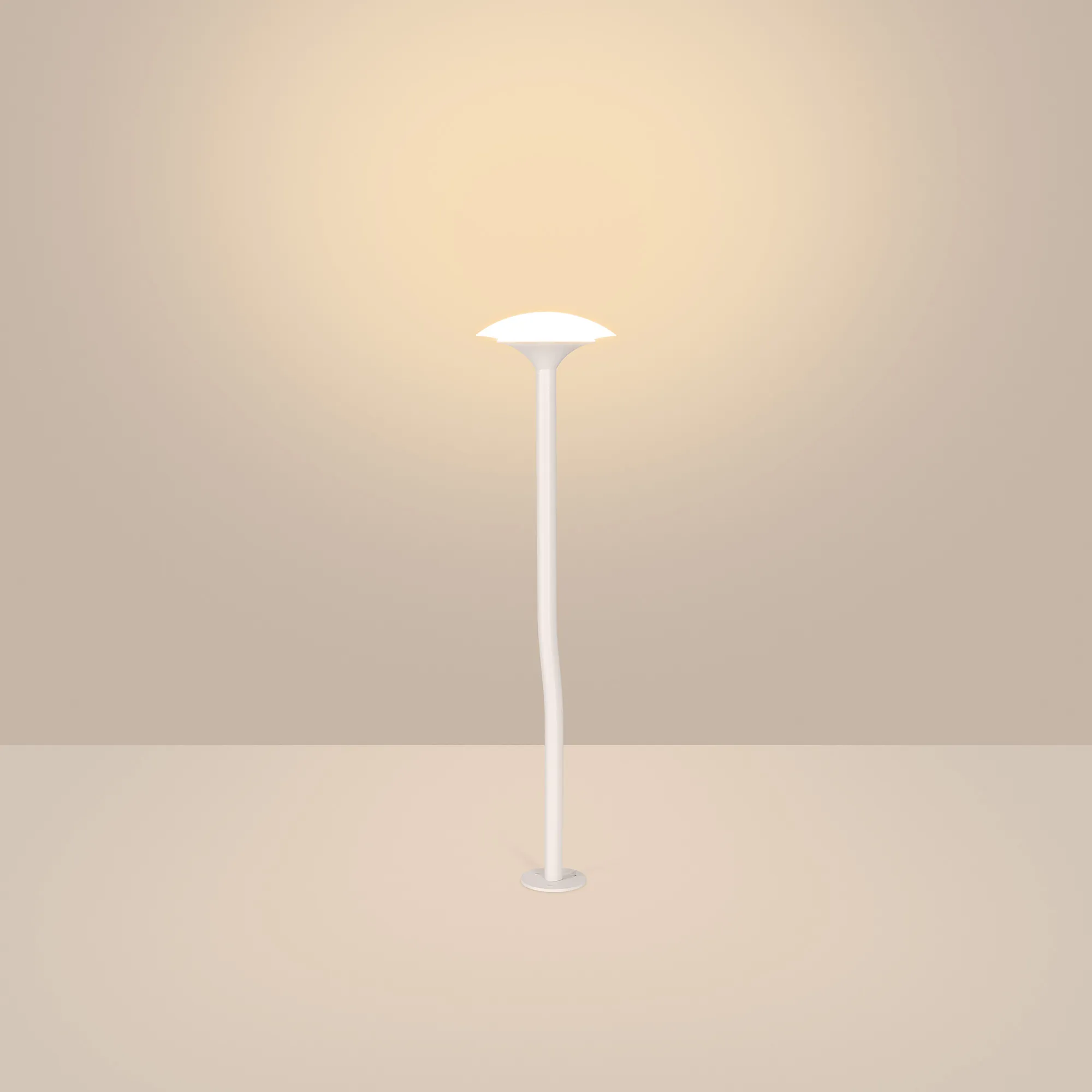 Уличный декоративный светодиодный светильник. Мощность 2 Вт, св. поток 252 лм, 122 лм/Вт, теплый 3000 K, CRI>80, угол излучения 100°, напряжение питания 24 В. Белый корпус из алюминия, прозрачный матовый рассеиватель из PMMA. Степень защиты IP65. Размер: диаметр 98 мм, высота 450 мм, высота углубления 155 мм. Монтаж в грунт с помощью основания пика (входит в комплект поставки). Драйвер приобретается отдельно.
