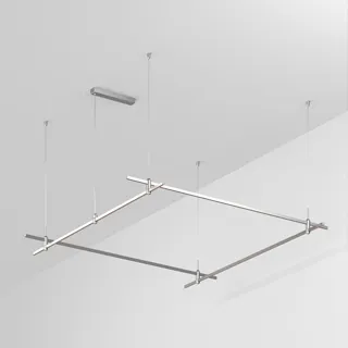 Подвесная конструкция APRIORI, форма квадрат. В комплекте треки с аксессуарами и гибкими подвесами. DC48V. Материал алюминий, цвет титан. Размер ДxШxВ: 3000x3000x22мм. Светильники и источники питания приобретаются отдельно.