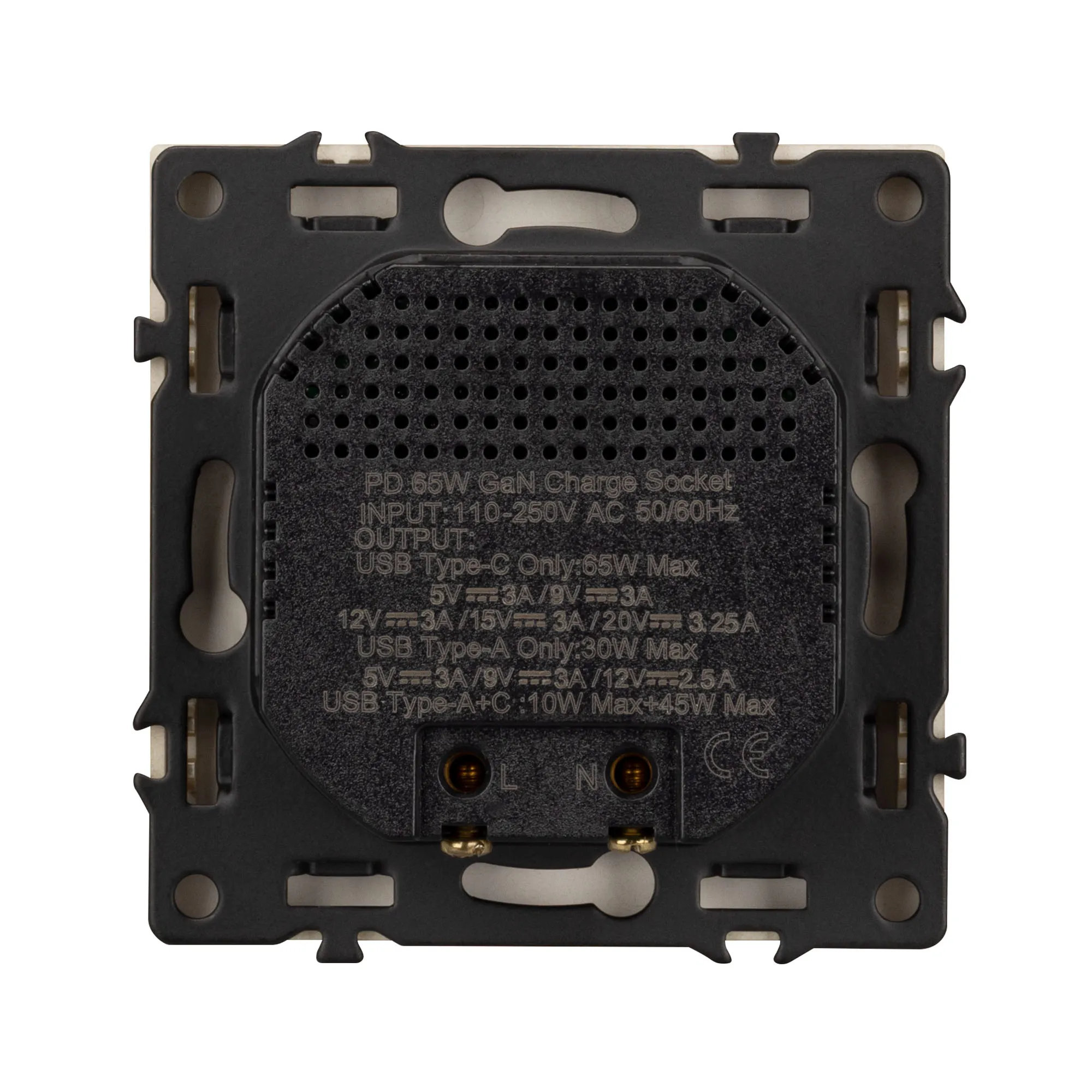 Механизм розетки с быстрой USB зарядкой на 2 порта. Цвет - золотой песок, с Soft-Touch покрытием. Без фронтальной рамки. Уровень пылевлагозащиты IP20. Тип подключаемого разъема - USB Type A + Type C. Устанавливается в стандартный подрозетник круглого сечения диаметром 60мм.