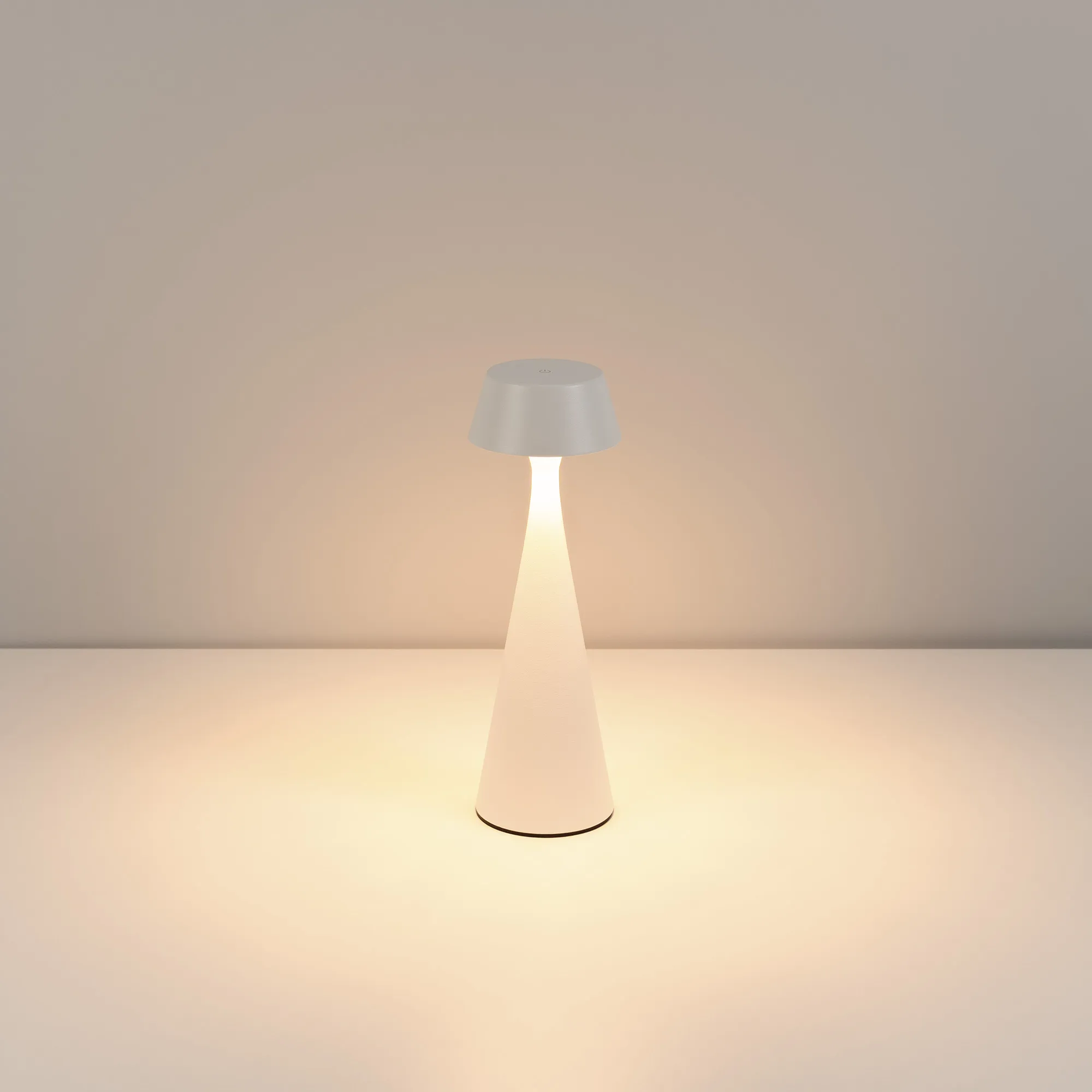 Настольный светильник со встроенным аккумулятором, 2Вт, алюминиевый корпус, цвет зеленый. Цвет ТЕПЛЫЙ БЕЛЫЙ 2200-2700-3000K, св.поток 110-130 лм, CRI(Ra)>80, угол 154°. Размер Ф80x242мм. IP54. Зарядка от сети переменного тока AC220-240V. Тип встроенного аккумулятора 2x2200мАч Li-ion, напряжение батареи 5V