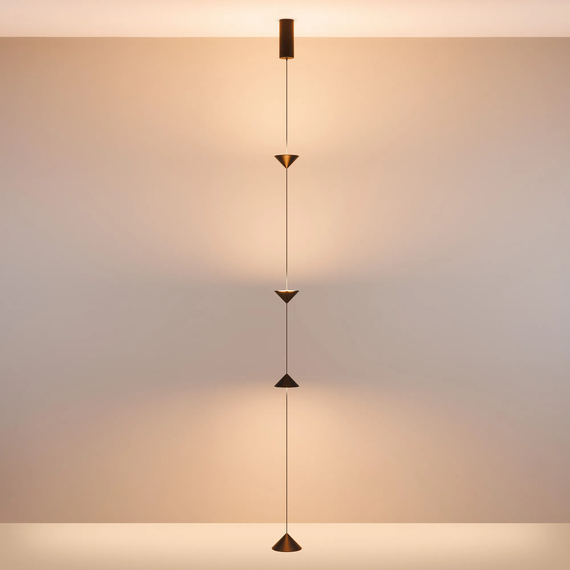 Декоративный накладной подвесной светильник. Мощность 12 Вт, св. поток 370 лм, 28 лм/Вт, теплый 2700 K, CRI>90, угол 110°, напряжение питания 230 В. Черный фигурный корпус из алюминия, экран PC, степень защиты IP20. Размер светоизлучающих модулей: Ø 100x55 мм; размер основания: Ø120*60 мм. Максимальная длина подвесной линии: 3800 мм (регулируется). Монтаж накладной, потолочная чаша: Ø60х150 мм. Драйвер 24-42 В, 300мА, пульсация<0,3. Совместим со встраиваемыми чашами 046018, 046020 (приобретаются отдельно).