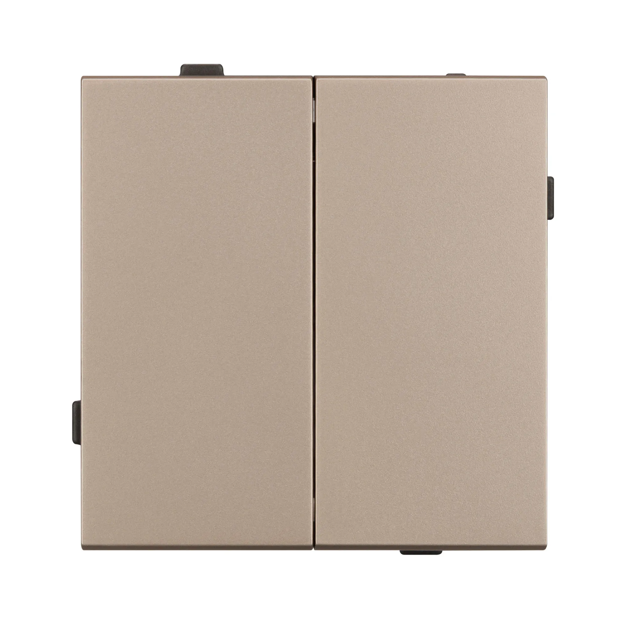 Механизм выключателя света клавишный на 1 пост 2 клавиши (проходной). Цвет - золотой. Без фронтальной рамки. Уровень пылевлагозащиты IP20. Выключатель устанавливается в стандартный подрозетник круглого сечения диаметром 60мм.