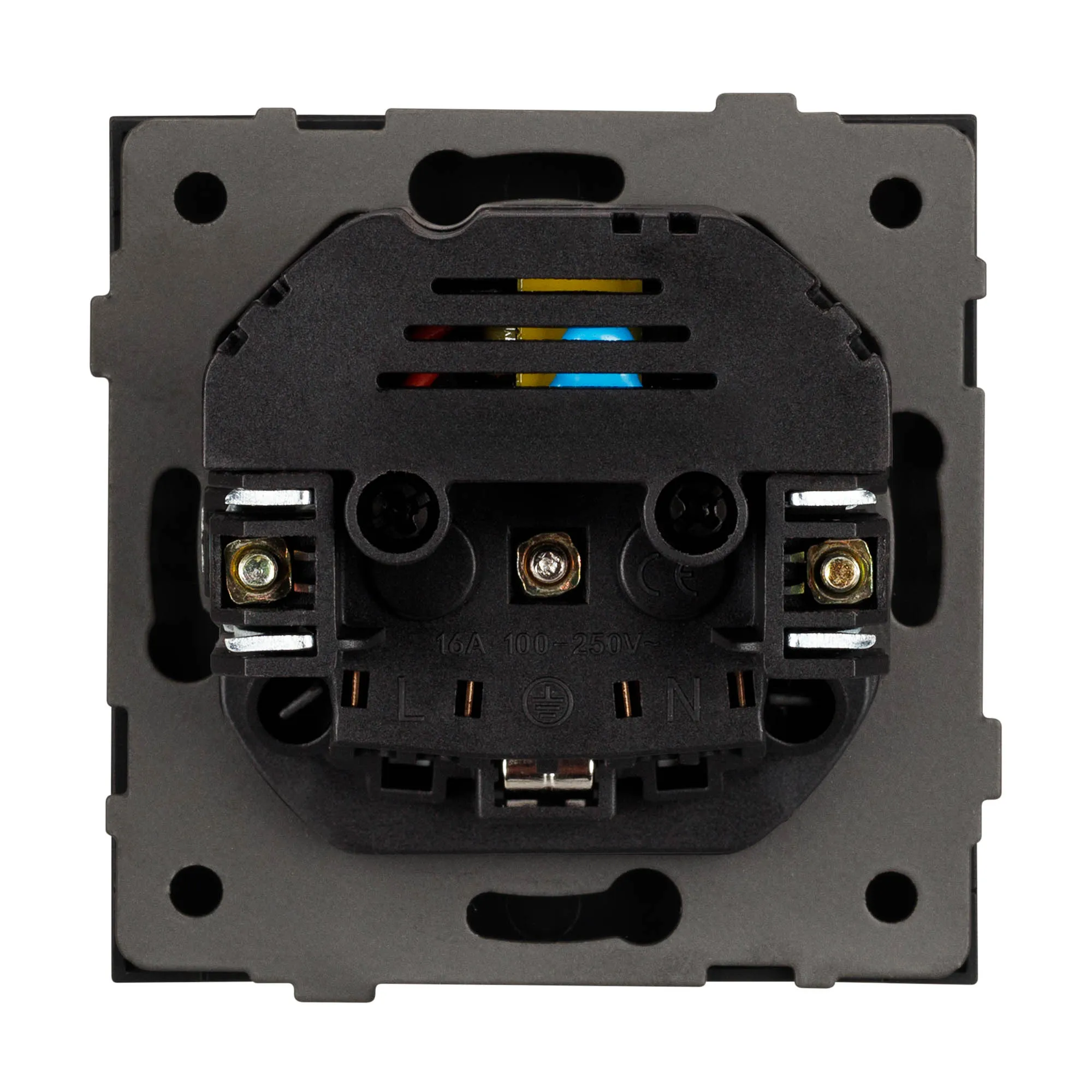Механизм розетки с заземлением на 1 пост и 2USB Type A порта. Цвет - черный. Без фронтальной рамки. Уровень пылевлагозащиты IP20. Розетка устанавливается в стандартный подрозетник круглого сечения диаметром 60мм.
