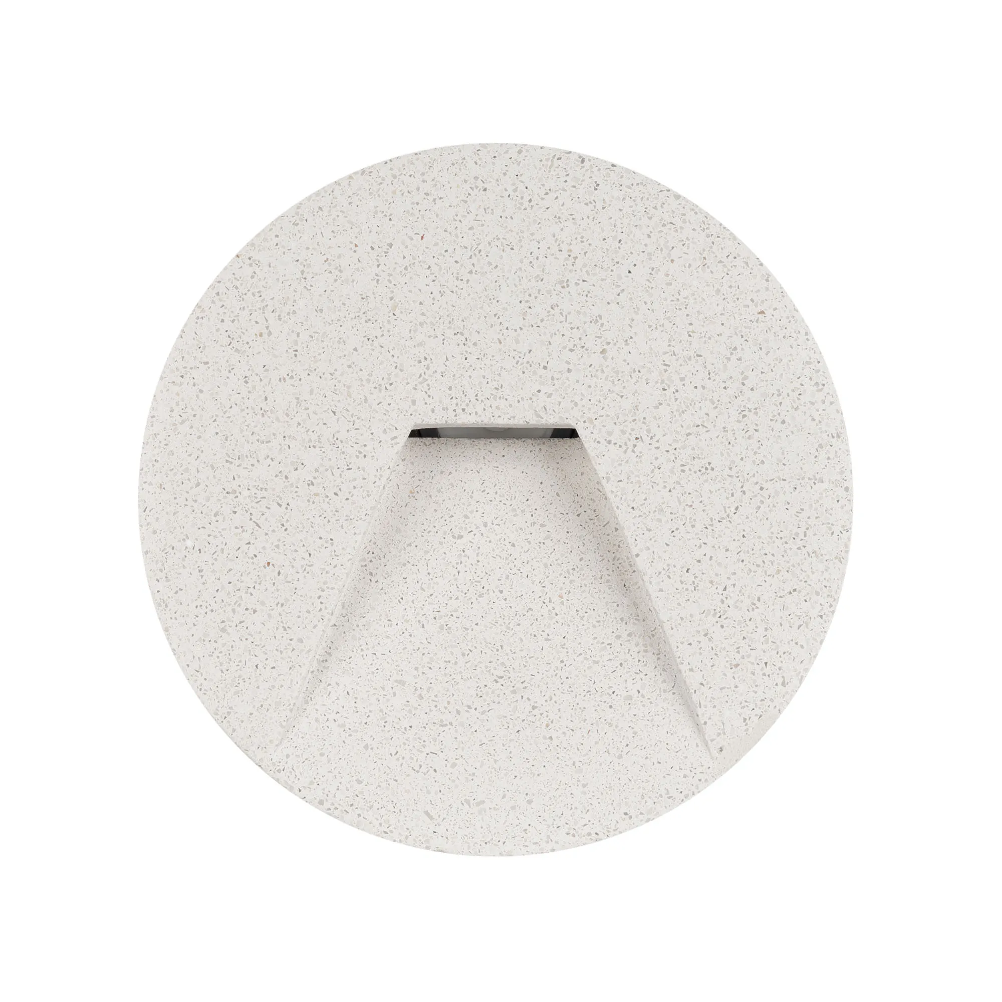 Светодиодный встраиваемый круглый светильник для стен, лестниц. Мощность 3Вт, световой поток 80 лм, теплый 3000К, угол 75x30°, CRI>80, напряжение 230 В. Круглый корпус из бетона белого цвета и алюминия. Степень защиты IP65. Питание AC230V, мощность 3Вт. Размеры DxH 120x76мм. Драйвер встроенный, пульсация <0.5%.